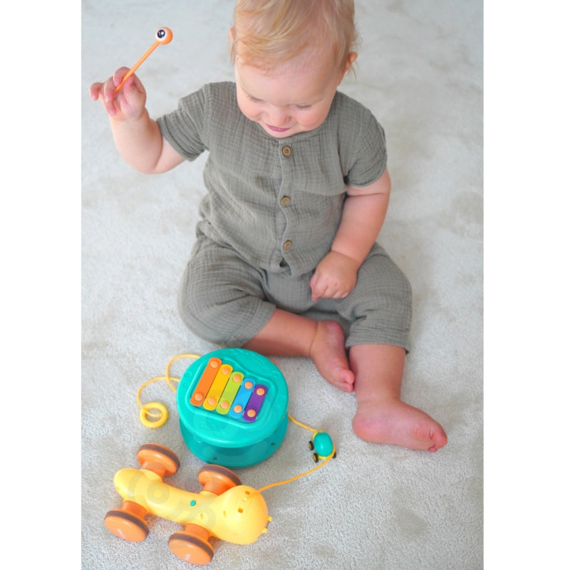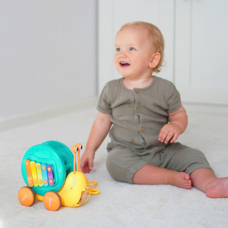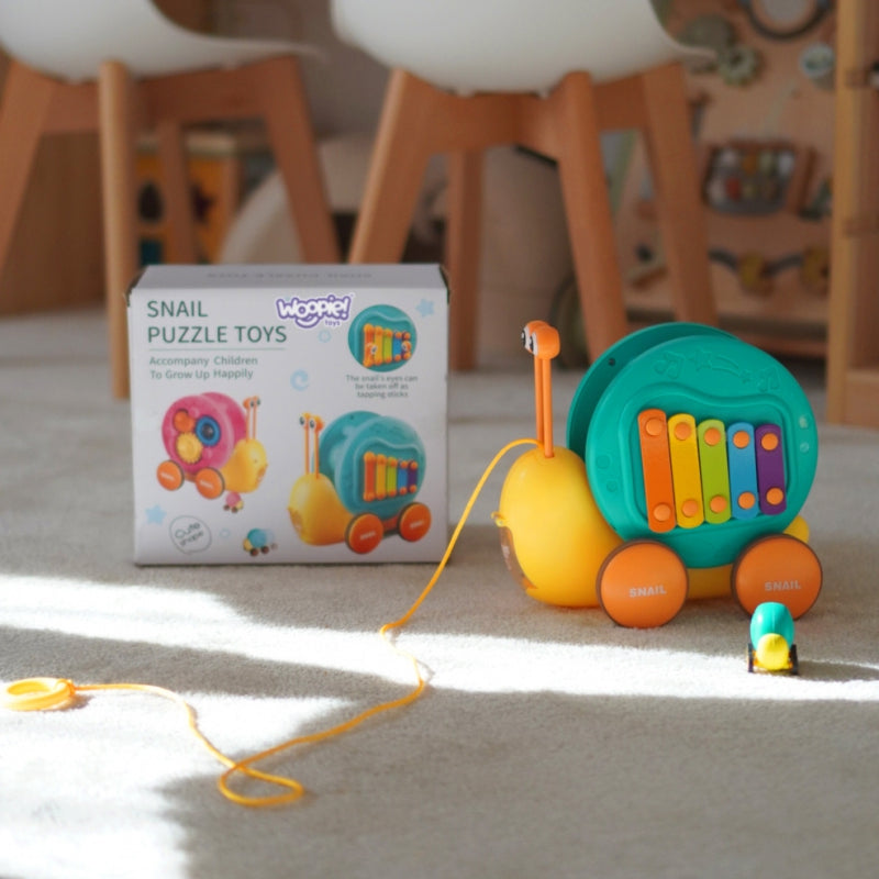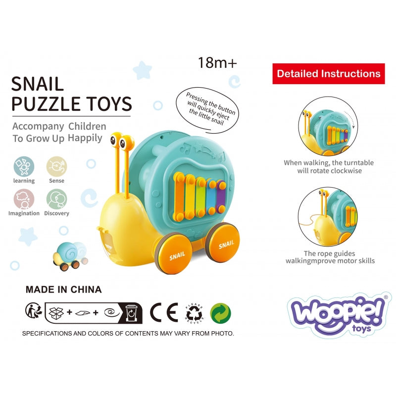 Daugiafunkcinis WOOPIE prekės ženklo sraigės stūmimo žaislas, prikaustantis vaikų dėmesį ir skatinantis jų vaizduotę. Ryškios spalvos taip pat lavina jų regimąjį suvokimą ir estetinį pojūtį. Sraigės traukimo žaislas suteikia įvairių būdų žaisti ir mokytis. Galima spaudyti klavišus ir taip lavinti vaikų klausą bei akies ir rankos koordinaciją. Skatinkite stebėjimą, loginio mąstymo įgūdžius ir fizinę koordinaciją, o jūsų vaikas mėgausis kūrybingo žaidimo valandomis.