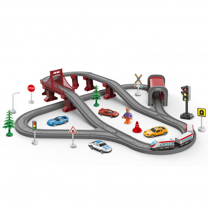 Spalvingas traukinukas džiugina įvairaus amžiaus vaikus, atneša daug atrakcijų ir begalę emocijų. Rinkinį sudaro 80 elementų, įskaitant modernus elektrinis lokomotyvas, tvirti bėgių kelio elementai, kelio ženklai ir automobiliai.