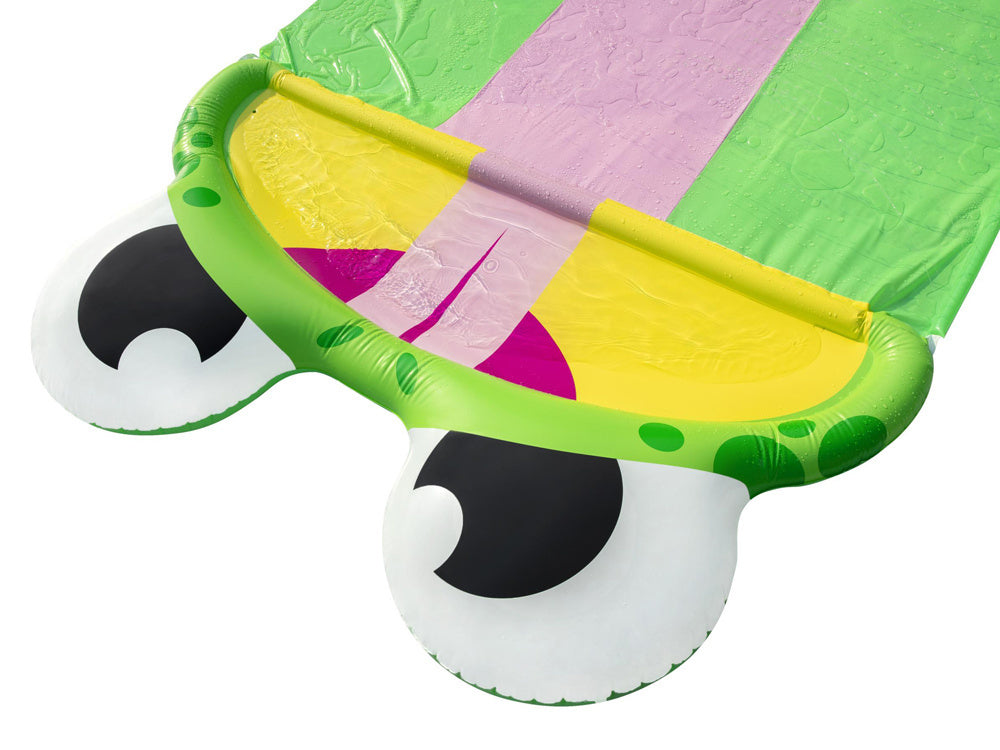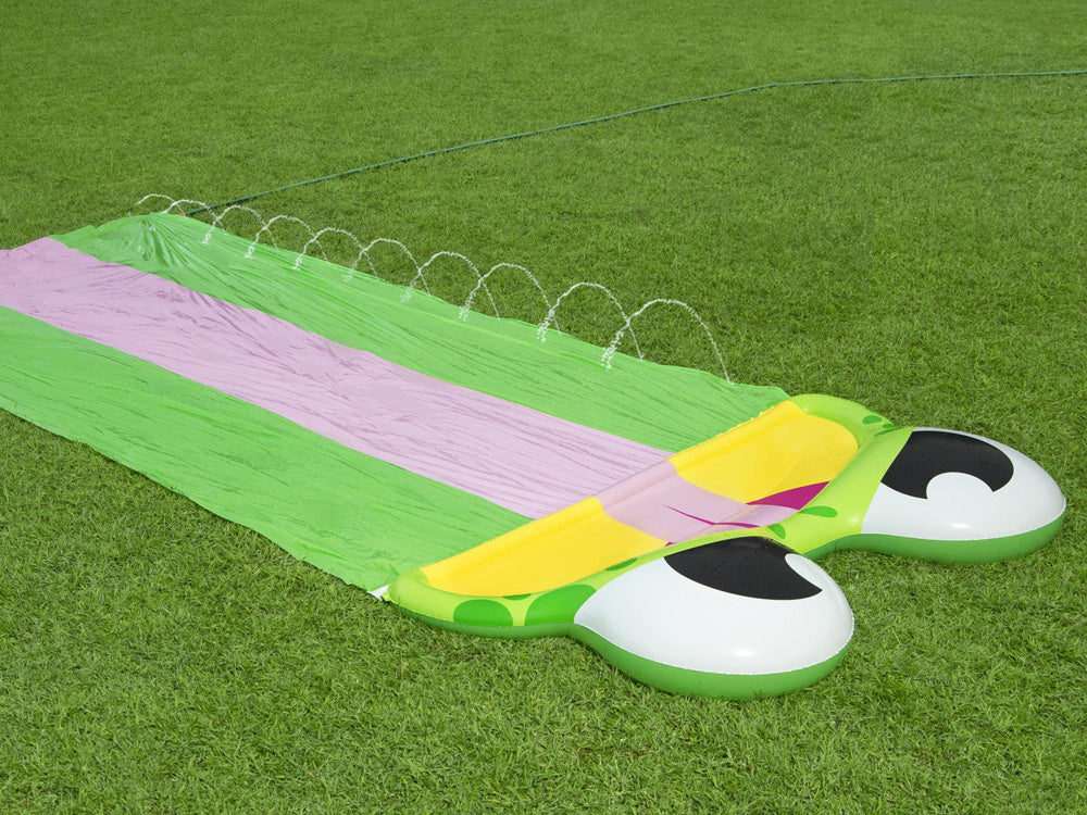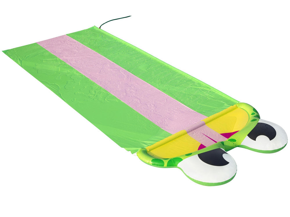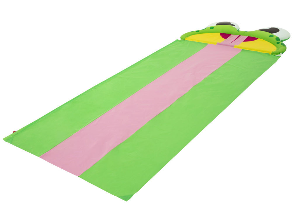Bestway trigubas vandens nusileidimo kalnelis varlytė- tai smagus "Bestway" žaidimų variantas visiems vaikams, mėgstantiems aktyviai leisti laiką lauke. Vandens kalnelis turi 488 cm ilgio platų trigubą takelį, idealiai tinkantį lenktynėms rengti, o finišo linijos pabaigoje pavaizduota laiminga varlytė. Takelis laistomas prijungus sodo žarną, esančių čiuožykloje.