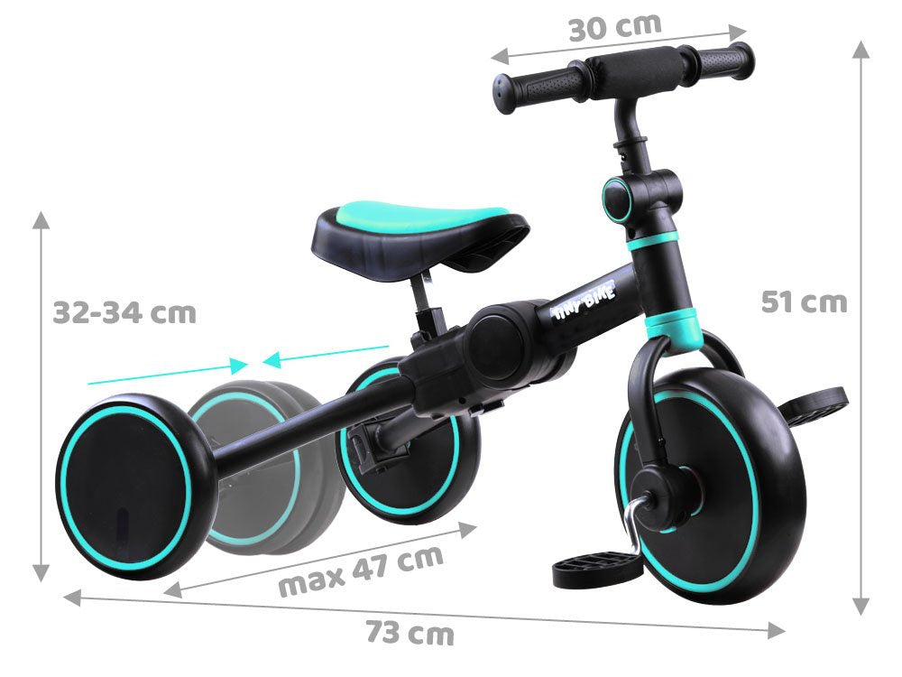 Tiny Bike – tai dviratis, kuris auga kartu su vaiku ir prisitaiko prie jo poreikių bei įgūdžių. Dviratis sukonstruotas labai paprastai, jo konvertavimas į įvairias funkcijas nereikalauja jokių įrankių. Visų pirma, dviratis yra saugus, lengvas ir patogus.