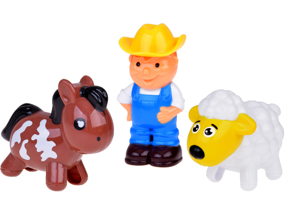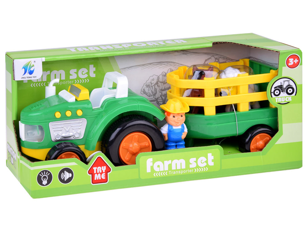 Traktorius su priekaba, ūkininkas ir gyvūnai yra vienas mėgstamiausių vaikų žaislų, nes kas gi nemėgsta žaisti ūkyje? Šis žaislas - puikus būdas lavinti vaiko vaizduotę! Žalios ir geltonos spalvų traktorius su tikroviškomis detalėmis ir judančiais ratais suteiks valandų valandas žavių pramogų. Jūsų vaikas gali atlikti mažojo ūkininko vaidmenį, prižiūrėti savo gyvulius - arklį ir avį - ir vežti juos atsidarančioje priekaboje.