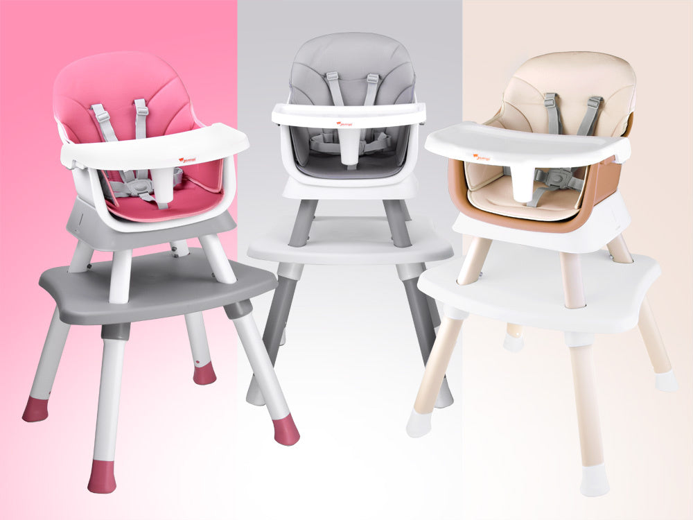 Maitinimo kėdutė - tai rinkinys 6in1, idealiai tinkantis jau 6 mėnesių vaikams, kurie pradėjo savarankiškai sėdėti. Tai modernaus stiliaus modulinis baldas, kuris tiks bet kuriam vaiko kambariui, svetainei ar virtuvei. Dėl to, kad ją galima naudoti įvairiais būdais, ji tiks ir prie valgomojo stalo, ir prie vaikų žaidimų zonos.