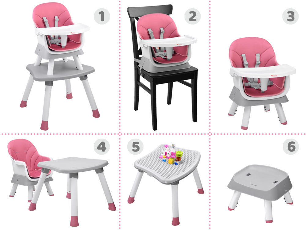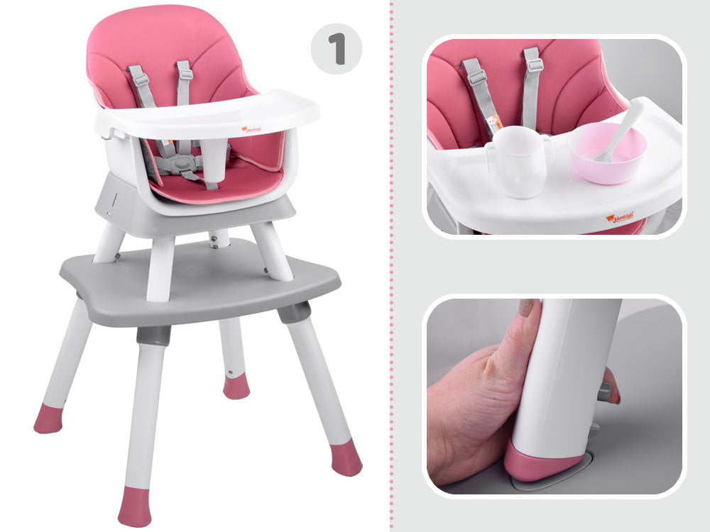 Vaikiška maitinimo kėdė 6in1, rožinė