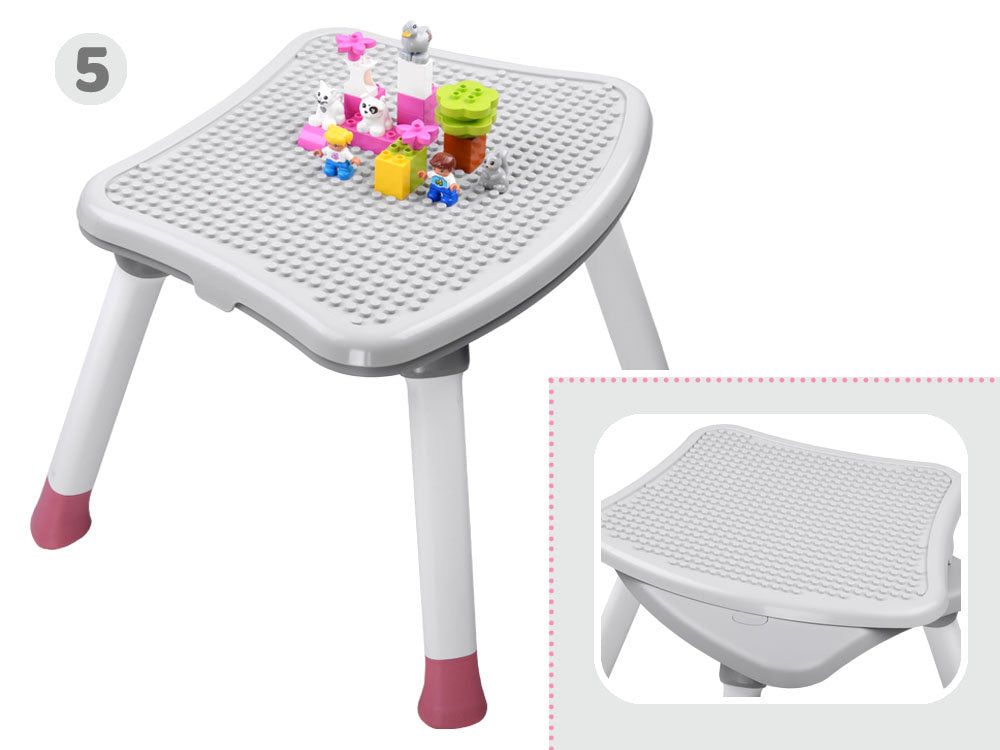 - gali būti naudojami 2 aukščio variantai: aukšta arba žema kėdutė + stalas