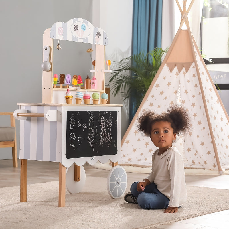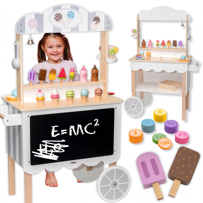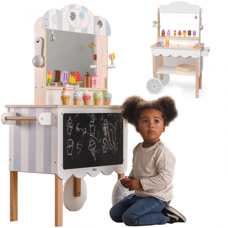 Vaikiška medinė cukrainė ir ledų parduotuvė ant ratų Viga
