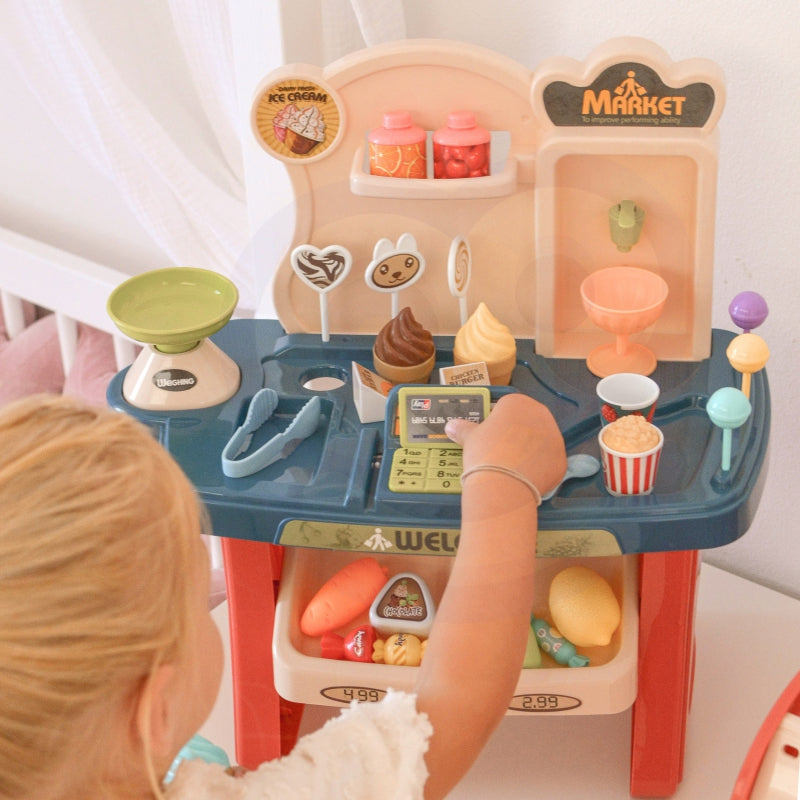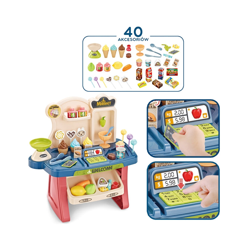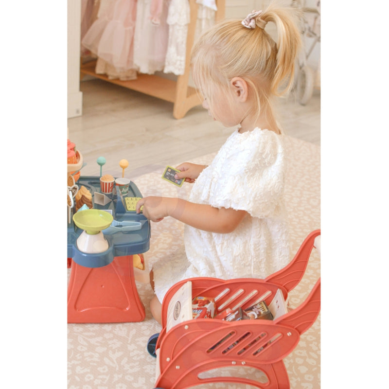 Vaikiška saldainių parduotuvėlė su vežimėliu ir priedais 40 vnt.
