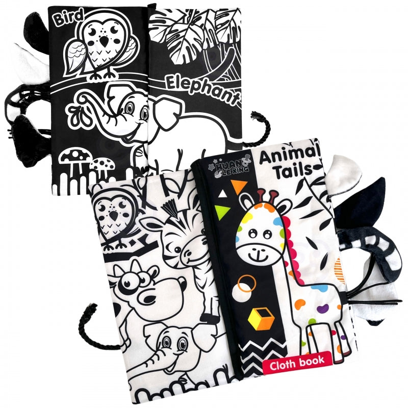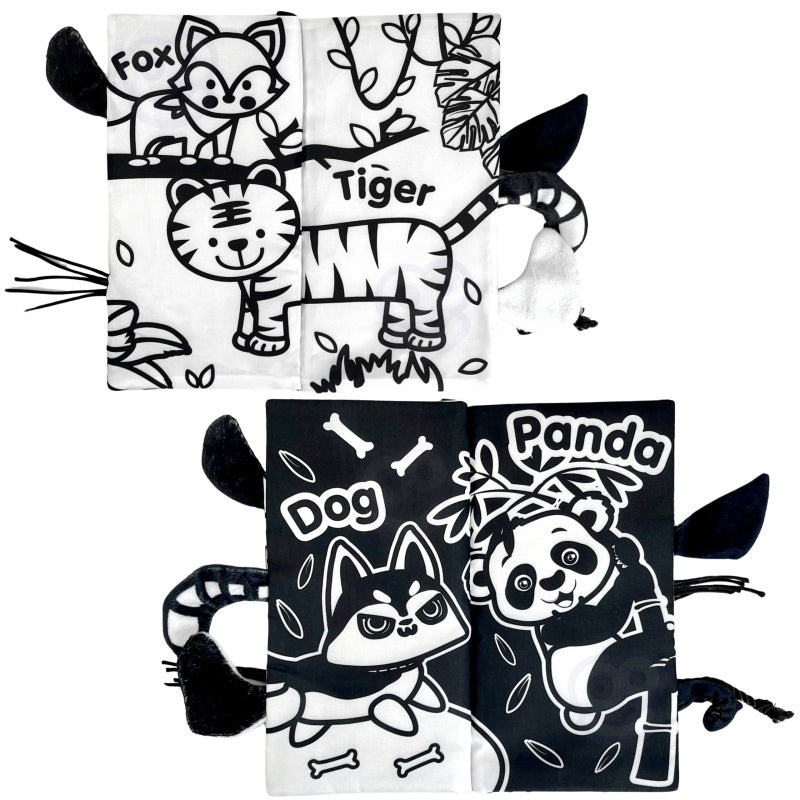 Sensorinė Woopie prekės ženklo knygelė, specialiai sukurta 0-6 mėnesių kūdikiams. Šnarantys ir labai švelnūs liesti puslapiai lavina mažylio pojūčius, atlikdami sensorinę funkciją. Juodai baltos iliustracijos lavina regėjimą ir suvokimą. Kiekviename puslapyje pavaizduotos skirtingų gyvūnų uodegos, kurias gaudydamas mažylis lavina akies ir rankos koordinaciją. Knygelę galima naudoti kaip vežimėlio ar vaikiškos lovytės pakabą, pritvirtintą su "Velcro" užtrauktuku.