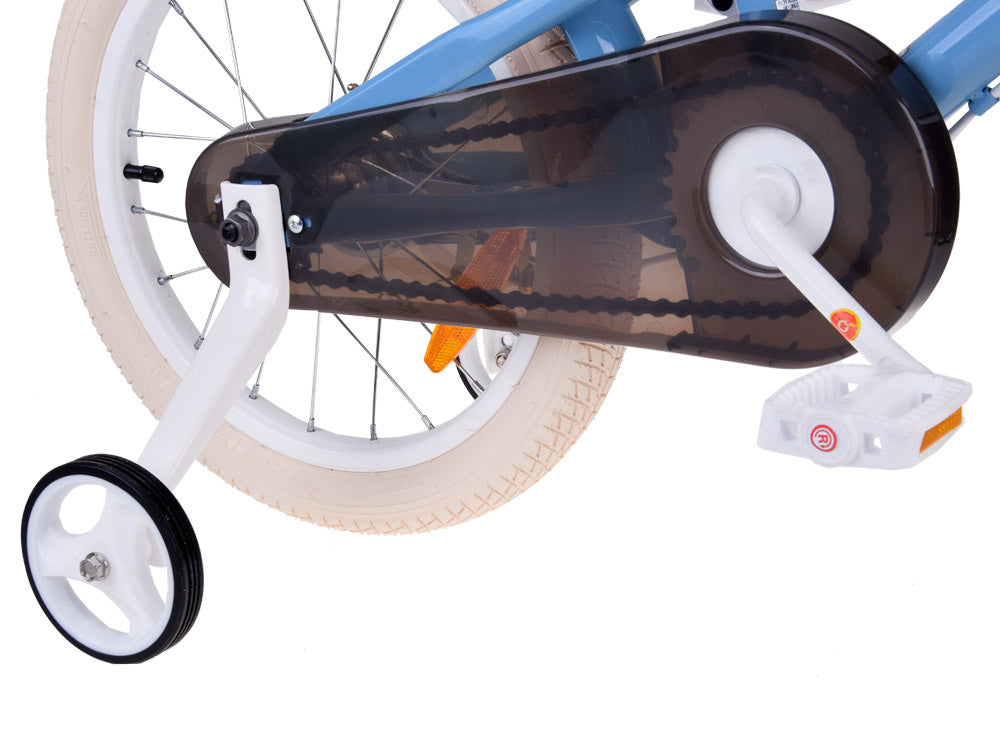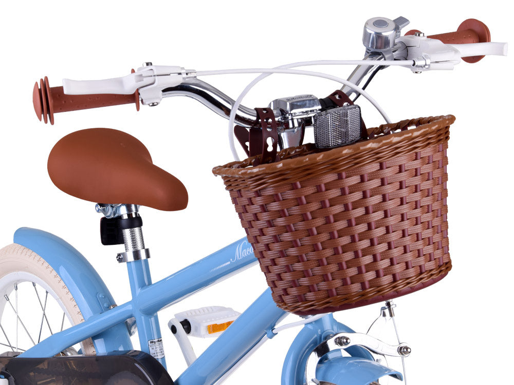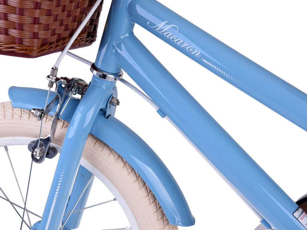 Royal Baby 16" MACARON - tai aukštos kokybės retro - vintage stiliaus dviratis kiekvienam dviračių gerbėjui! Lengvas plieninis rėmas suprojektuotas taip, kad vaikas galėtų lengvai užlipti ir nulipti nuo dviračio. Šio prekės ženklo gaminiai pasižymi aukšta atlikimo kokybe, patraukliu dizainu ir naujovėmis. Royal Baby garantuoja saugų ir malonų važiavimą kiekvienam vaikui.