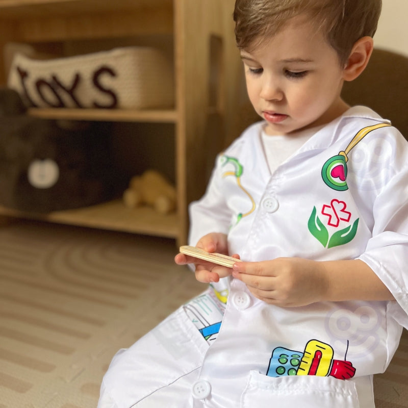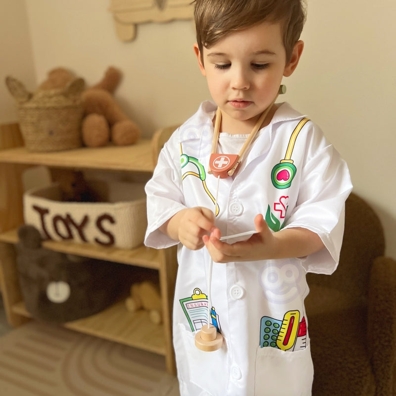 Daugelis vaikų svajoja būti gydytojais, o drabužiai leis jiems jaustis taip. Atminkite, kad vaidmenų žaidimas skatina jūsų vaiko vaizduotę ir kūrybiškumą!