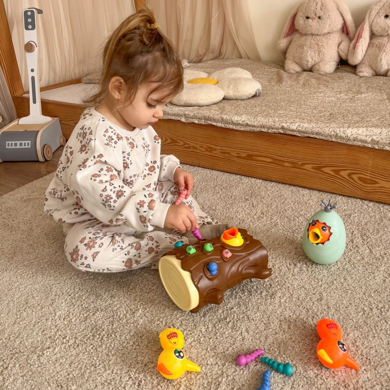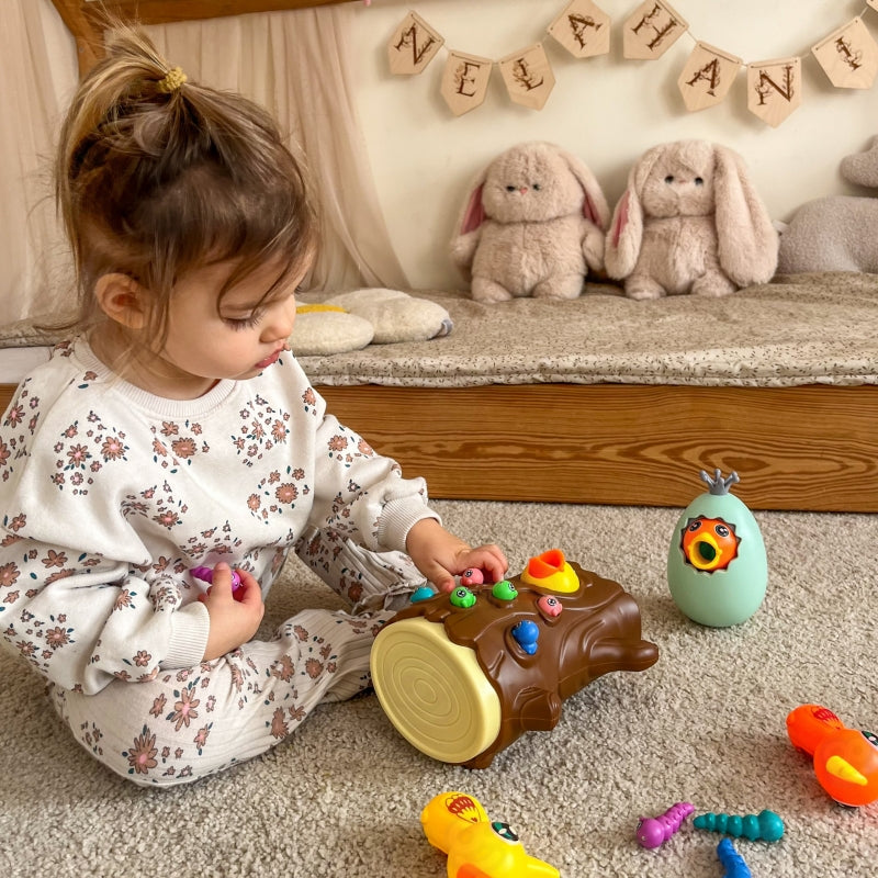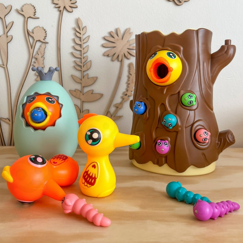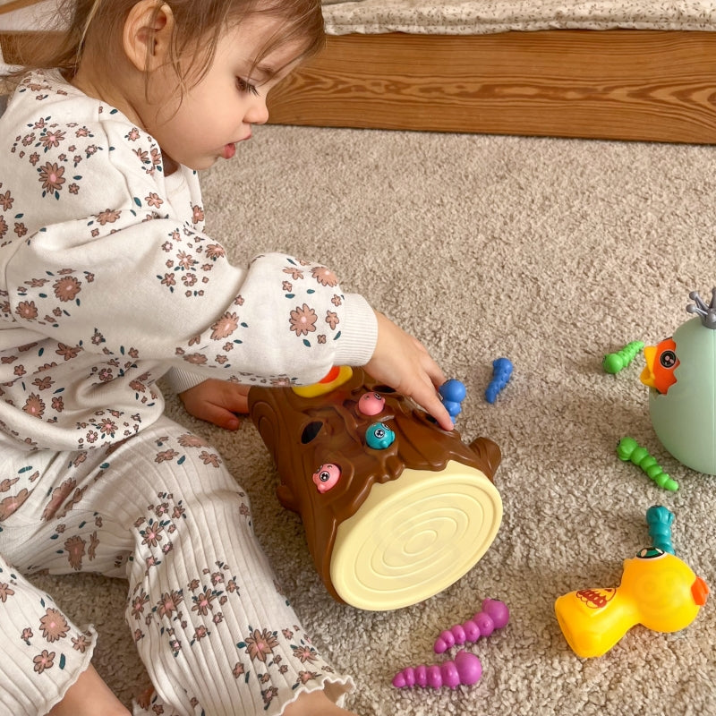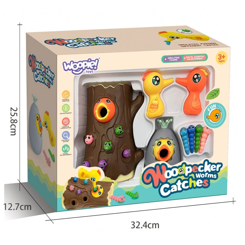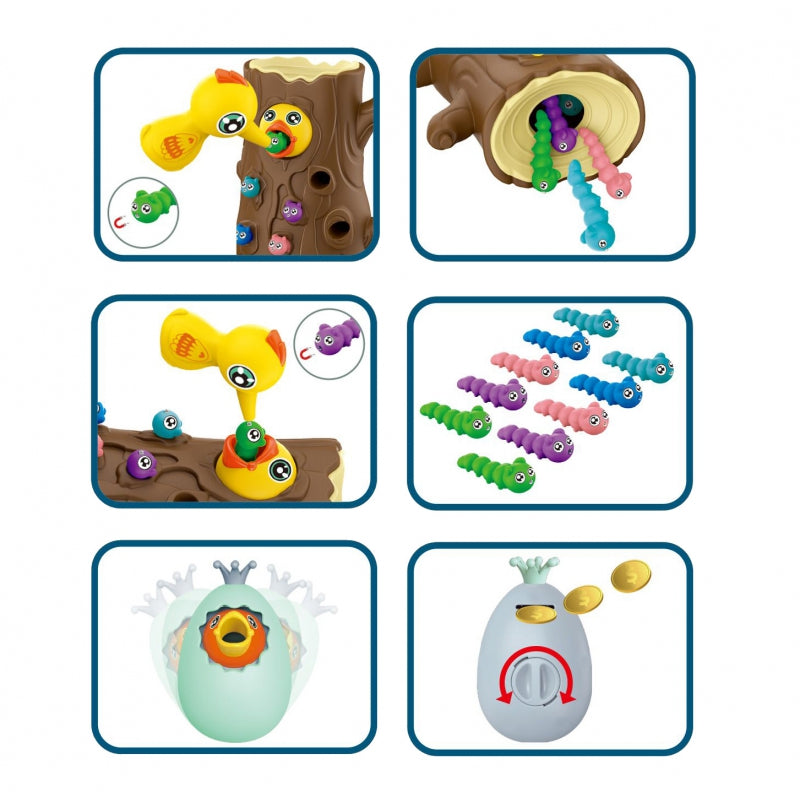 Įgūdžių žaidimas "Pagauk kirminą" puikus būdas praleisti laiką kartu su vaiku. Dėl paprastų taisyklių ir intuityvaus naudojimo jį gali žaisti beveik kiekvienas. Žaidime reikia paimti medžio skylėse paslėptus sliekus, kuriuos galima sugauti, o paskui įdėti atgal į paukščio snapą. Vienu metu su rinkiniu gali žaisti du vaikai. Žaidimas moko žaisdamas - be kitų dalykų, jis padės lavinti motorinius (judėjimo) ir regėjimo įgūdžius.