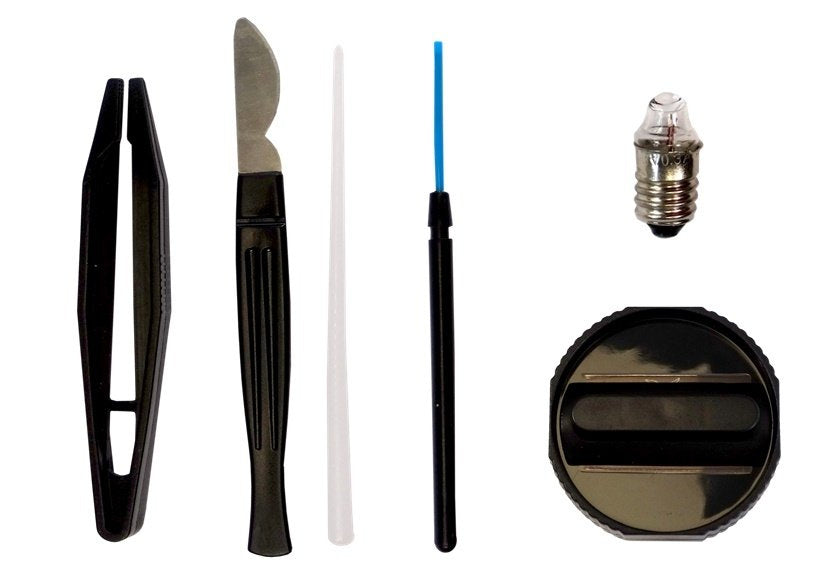 - pincetas, peilis, mentelė, lazdelė