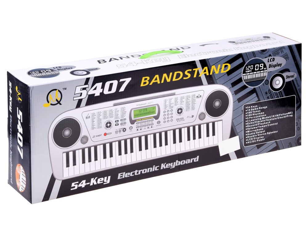 Vaikiškas pianinas su mikrofonu MQ5407 - tai vidutinio dydžio pianinas vaikams, kuriame yra viskas, ko reikia norint žengti pirmuosius žingsnius muzikos pasaulyje. Pianinas yra modernaus dizaino, turi gražų žalios spalvos 4 funkcijų LCD ekraną ir nuostabų erdvinį garsą, nes yra naudojami stereo garsiakalbiai. Jis taip pat turi mokymosi funkcijas, ekranas apšviečia klavišus pagal foninės muzikos ritmą.