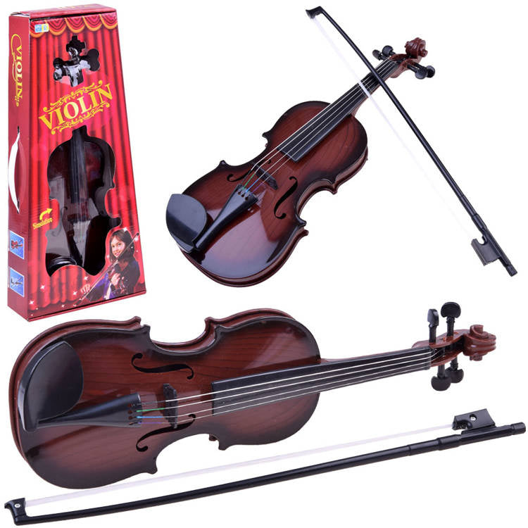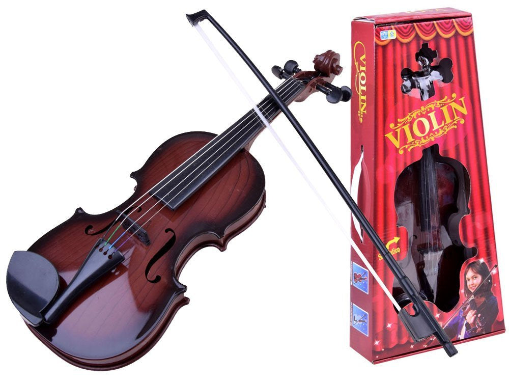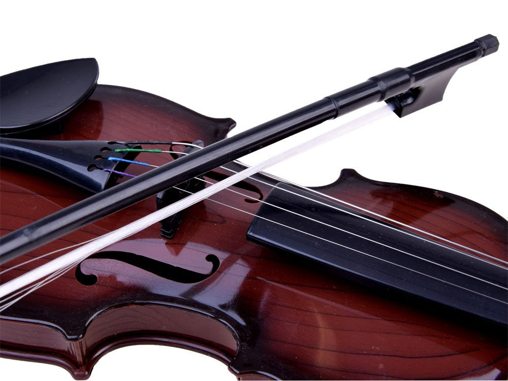 Plastikinis smuikas su lanku – pasiūlymas vaikams, norintiems pradėti muzikinius nuotykius su šiuo instrumentu. Mūsų siūlomas žaislinis smuikas puikiai imituoja tikrą instrumentą, yra mažo dydžio, idealiai tinka mažoms vaiko rankytėms, jis plastikinis, turi 4 metalines stygas.
