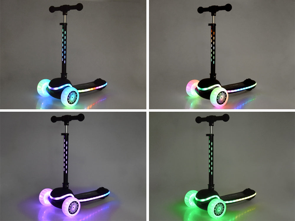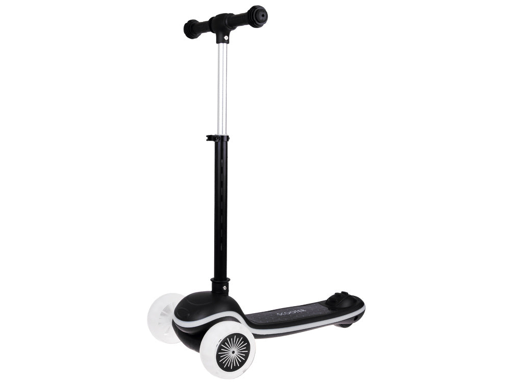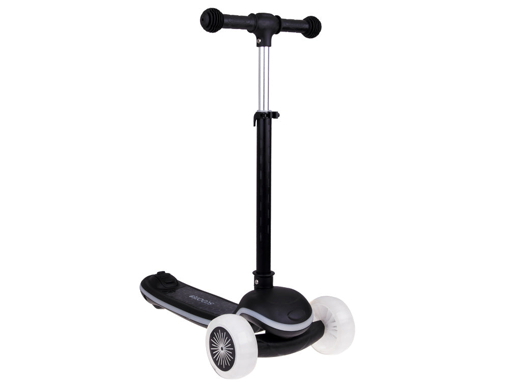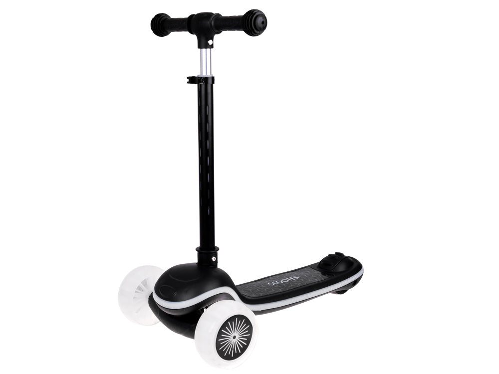 Vaikiškas triratis paspirtukas su LED apšvietimu ir muzika, juodas