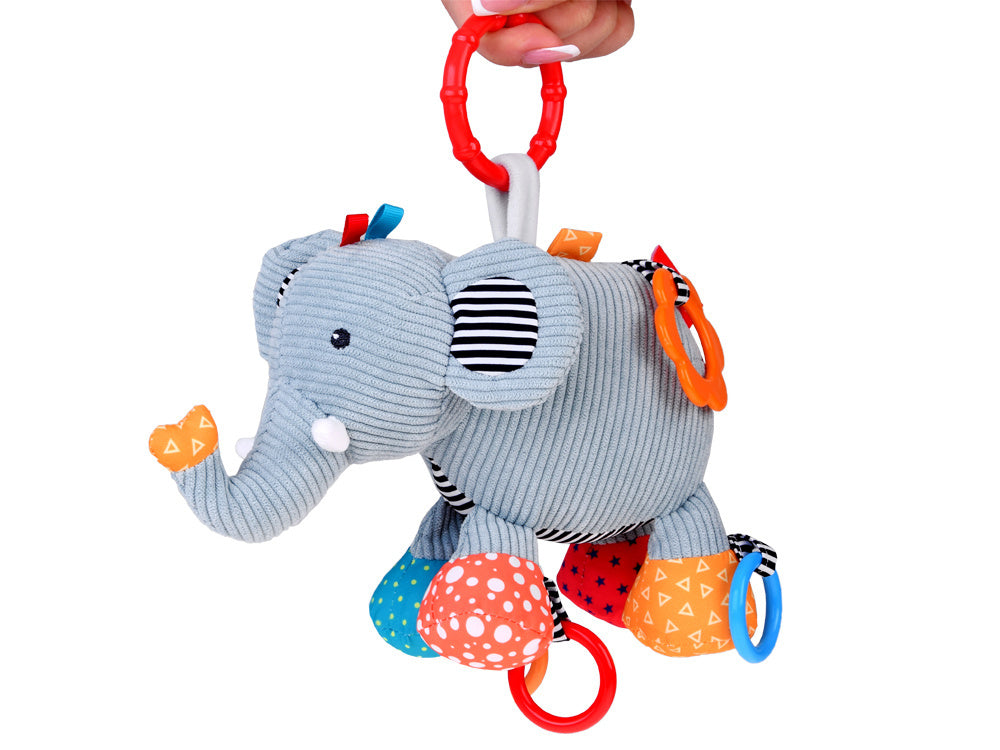 Vaikiško vežimėlio pakabukas barškutis, drambliukas