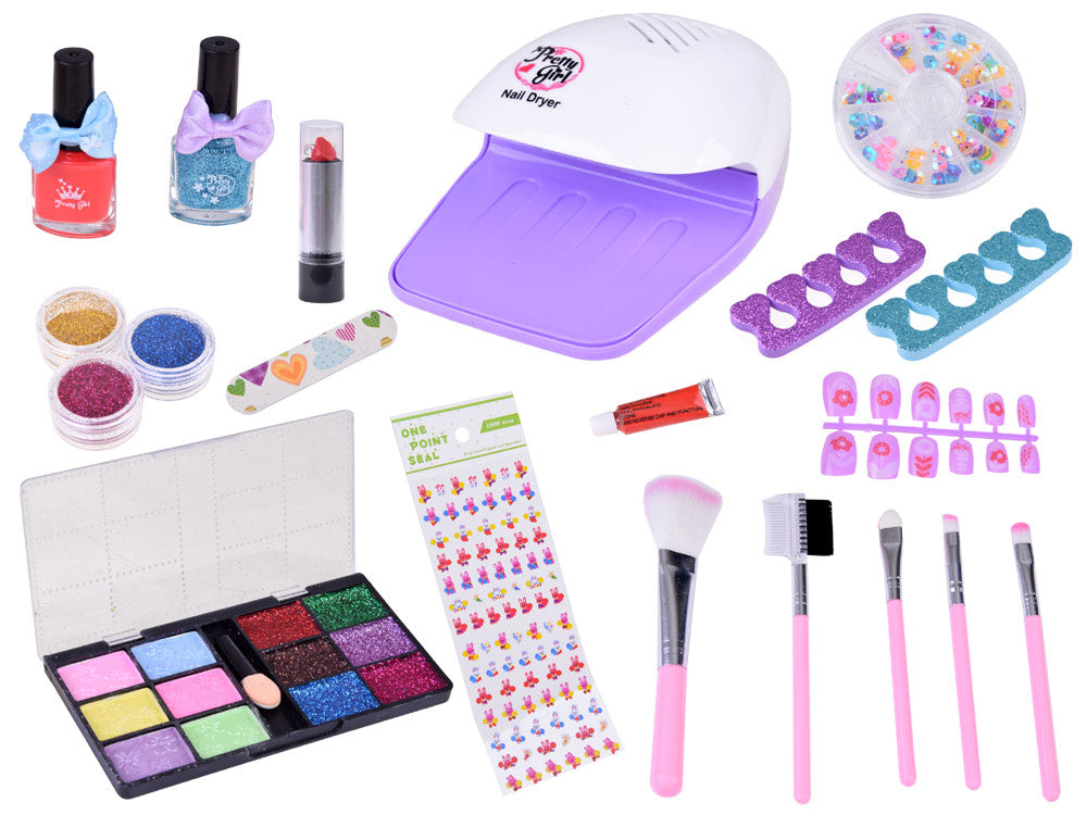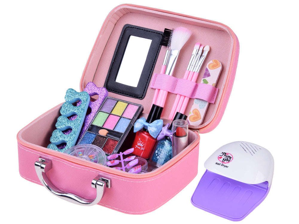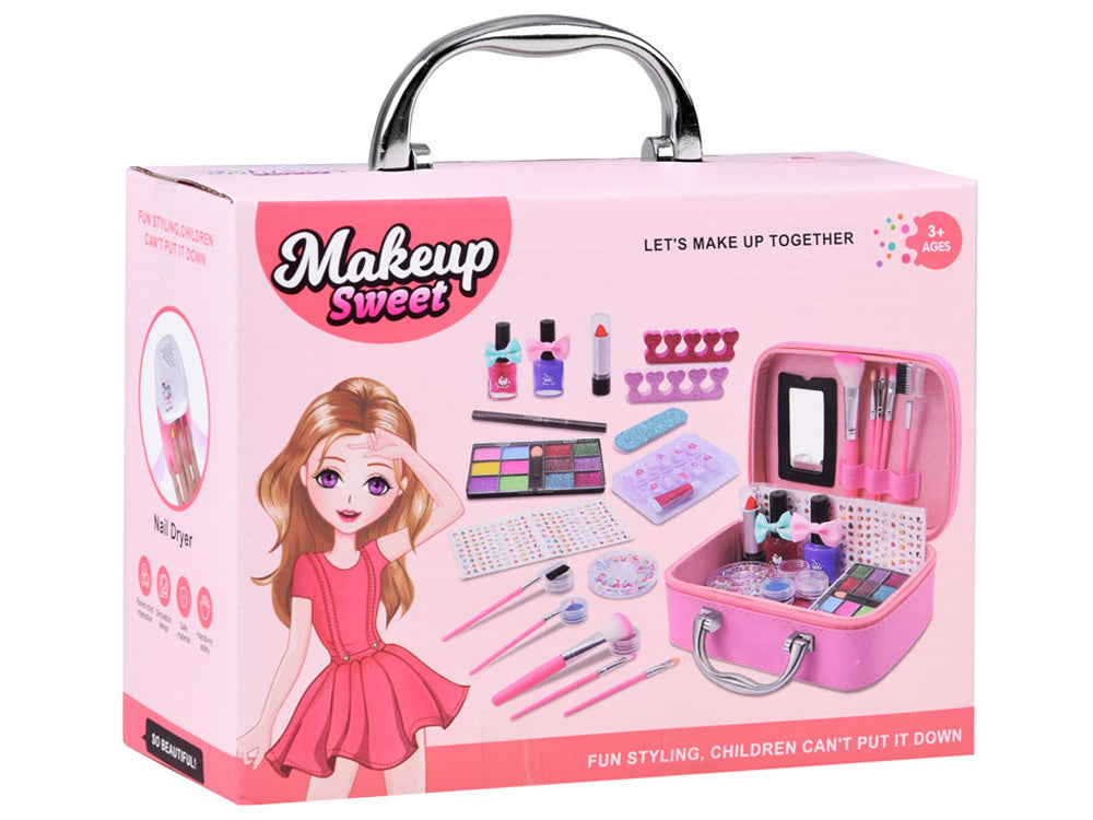 Žavus lagaminėlis, pilnas kosmetikos, skirtos gražiems nagams ir makiažui sukurti, patiks kiekvienam vaikui. Visas rinkinys įdėtas į gražių lagaminėlį, kuriame yra veidrodėlis ir laikikliai kosmetikai. Dėka patogios rankenos, jį galima pasiimti bet kur su savimi, kaip tai daro profesionalūs stilistai.