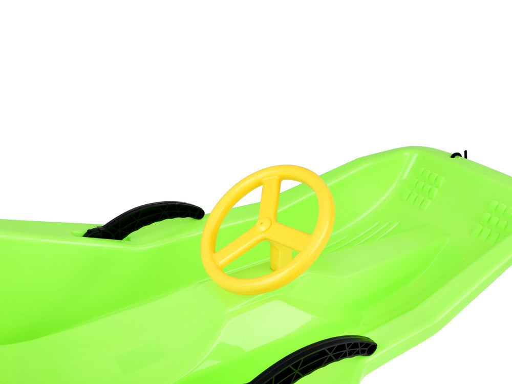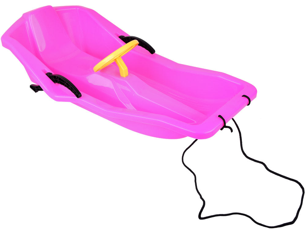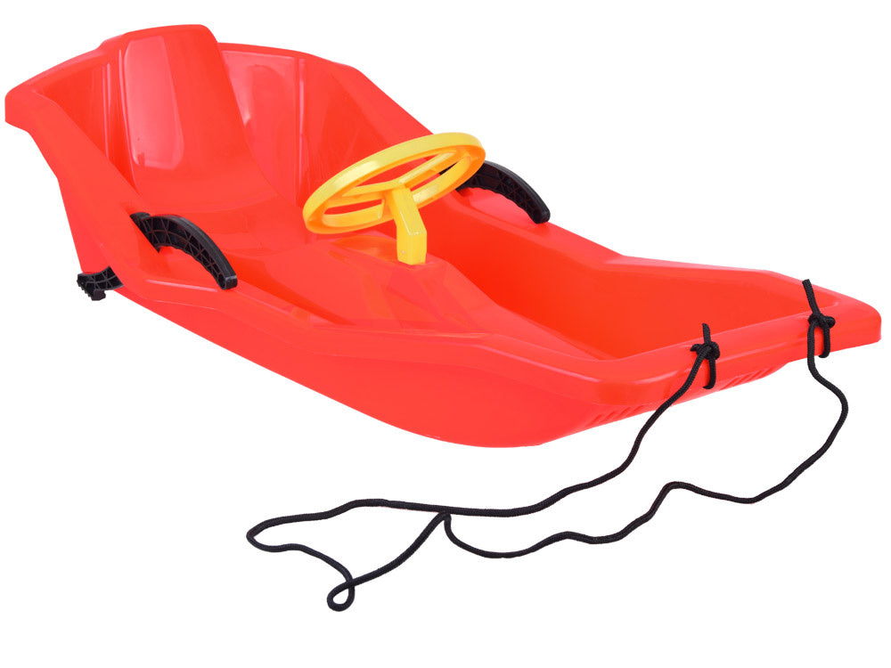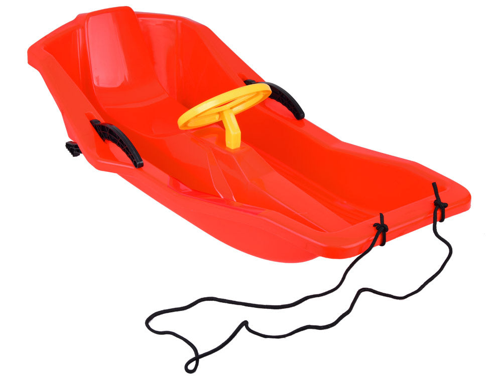 Patogios ir tvirtos vaikiškos rogutės su atlošu, stabdžiu ir vairu - puikus pasirinkimas žiemos pramogoms! Iš tvirto plastiko pagamintos rogutės užtikrina ilgalaikį naudojimą ir puikią pramogą ant bet kurios kalvos, skirtos čiuožimui. Atsižvelgiant į mažuosius, rogutės yra aptakios formos, be aštrių briaunų, o jų sėdynė yra profiliuota ir patogi. Plastikinis vairas yra tik manekenas, tačiau suteikia rogėms žavesio.