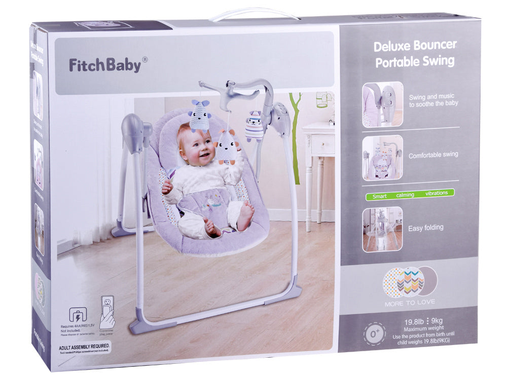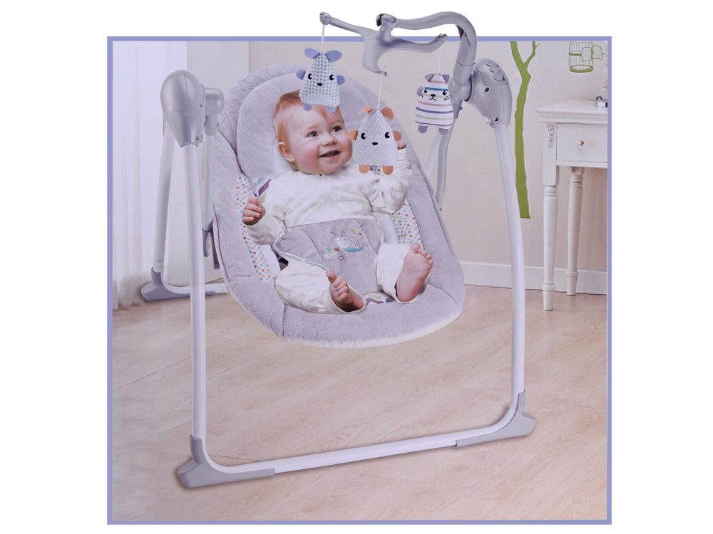 Elektrinė supynė yra puikus sprendimas kiekvienam vaikučiui. Reguliuojami saugos diržai užtikrins jūsų vaiko saugumą. Minkšta, patogi sėdynė su nuimama pliušine galvos pagalve garantuoja patogų naudojimą. Sėdynės apmušalai nuimami, todėl ją lengva palaikyti švarią. Virš gulto kabo trys žavūs pliušiniai žaisliukai, kurie patrauks vaiko dėmesį, o laikui bėgant vaikas mielai juos pasieks, lavindamas smulkiąją motoriką.