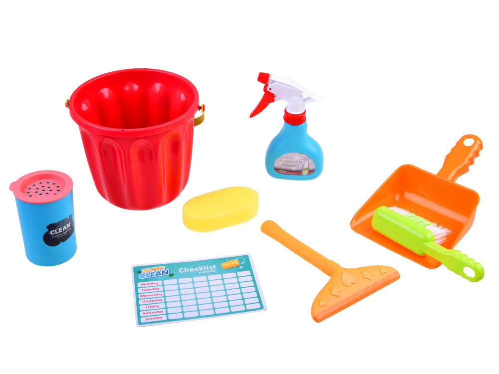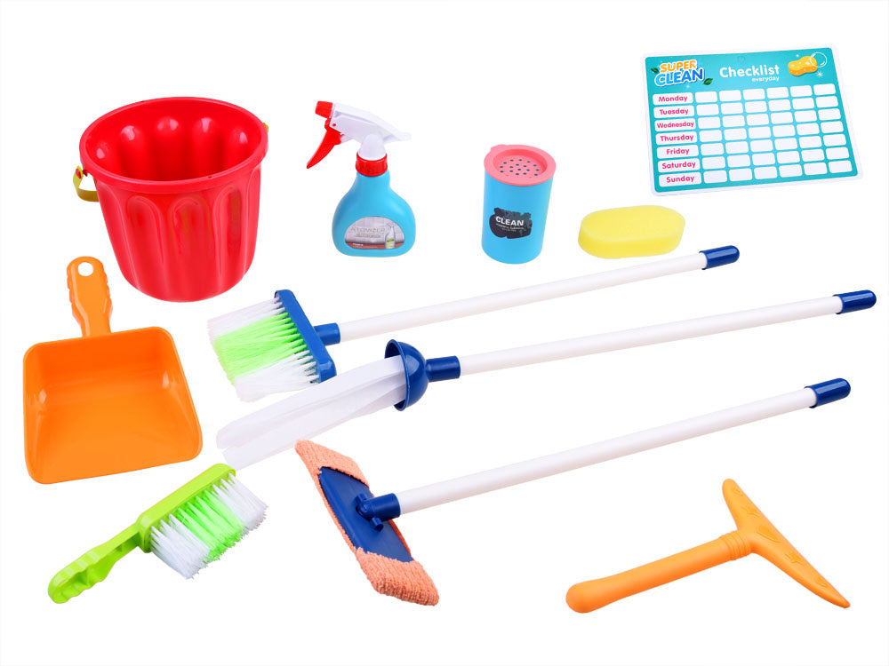 Valymo rinkinys su kibiru, šluoste ir priedais tiks kiekvieno vaiko kambaryje. Šis rinkinys bus naudojamas ne tik pramogoms, bet ir padės išmokyti vaiką rūpintis švara savo kambaryje. Vaikai mėgsta mėgdžioti suaugusiuosius, todėl šis rinkinys puikiai tiks mažajam pagalbininkui.