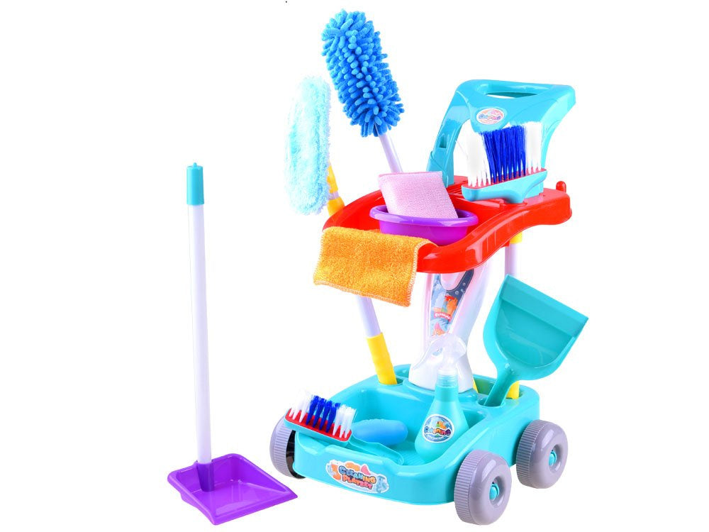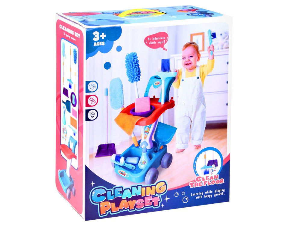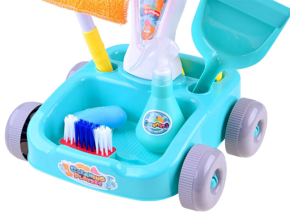 Valymo rinkinys su vežimėliu ir priedais, mėlynas