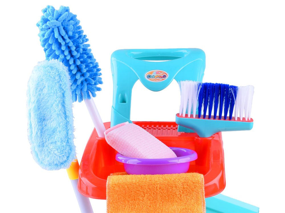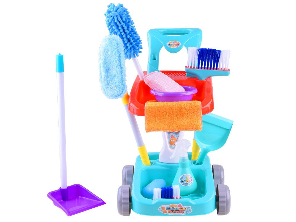 Valymo rinkinys – tai profesionali įranga, padedanti palaikyti tvarką. Vežimėlis su lentynomis ir įranga leis kiekvienam vaikui išmokti valyti, įgyti įprotį palaikyti tvarką.