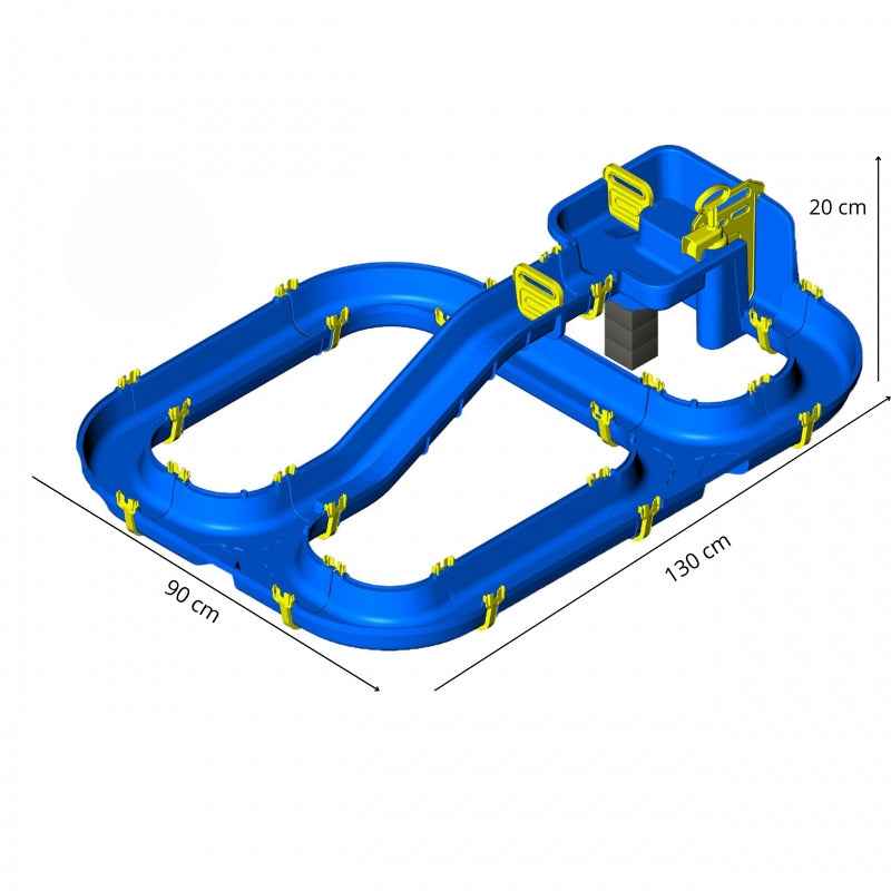 Kai vaikas pila vandenį, jis atlieka judesį, dėl kurio valtis kanaluose juda. Vandens srovę kanale taip pat galima gauti sukant vandens ratą. Neįprasta vandens smėlio dėžė iš Vokietijos vaikų žaislų gamintojo „Big“.
