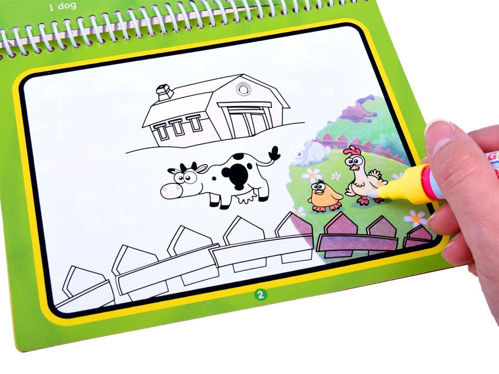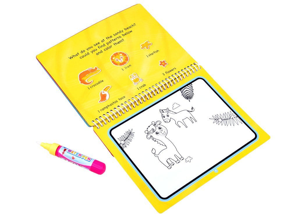 Kiekvienas vaikas mėgsta piešti. Puiki nauja vandens spalvinimo knygelė yra puikus būdas lavinti savo meninius įgūdžius nesusitepdami dažais ar flomasteriais. Visas smagumas yra surasti paveikslėlyje paslėptus objektus naudojant tik vandens rašiklį. Nudažykite popieriaus lapą vandeniu ir stebėkite, kaip jis įgauna spalvą ir pasirodo gyvūnų paveikslėlis.