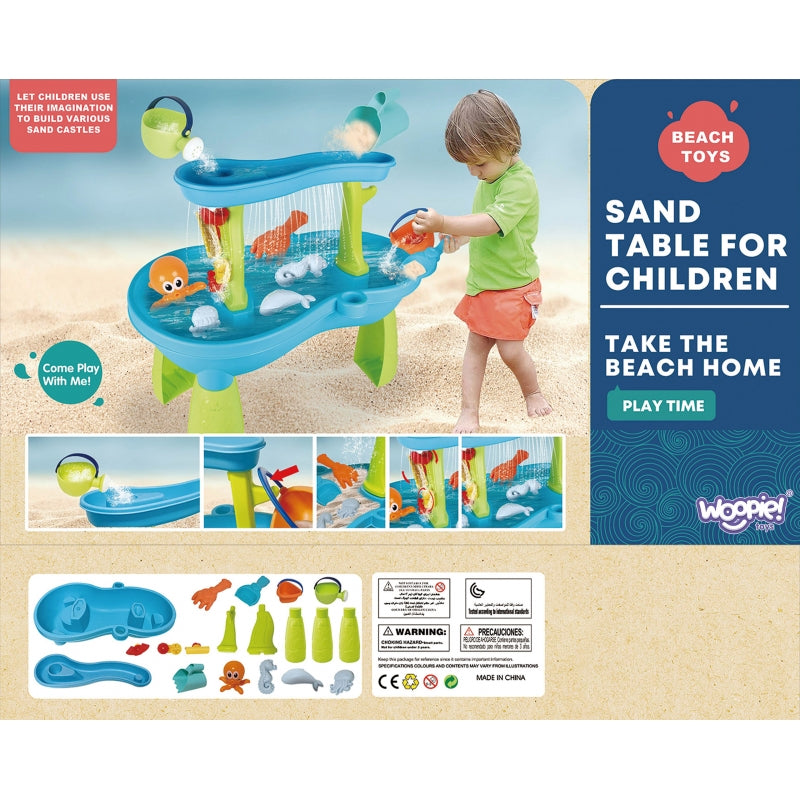 WOOPIE prekės ženklo „Octopus Water Table“ yra puikus žaislas žaisti su vandeniu ir smėliu. Vaikas gali įpilti vandens į stalo viršų ir matyti, kaip lyja vanduo ir kaip vanduo juda ant vandens malūnų. Rinkinys skirtas pramogoms namuose ir lauke. Puikiai tinka žaisti namuose ir paplūdimyje ar smėlio dėžėje.