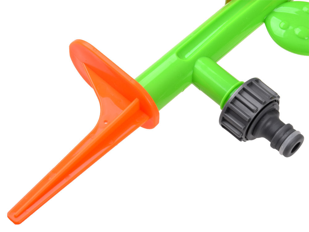Linksmas gėlės formos vandenį purškiantis žaislas suteiks daug džiaugsmo ir juoko, kai pradės purkšti vandenį ant vaikų. Žaislas su galimybe prijungti prie sodo žarnos, dėl slėgio jis pradės vėsinti viską ir visus aplink. Veikiant vandens srovei, spalvotos žarnos pradės pašėlusiai banguoti į visas puses, purkšdamos vandenį, o žaisle esančios spalvotos gėlės linksmai suksis, papildomai purkšdamos vandenį. Tai puiki idėja, kaip karštomis vasaros dienomis puikiai praleisti laiką sode. Bus labai smagu, tikrai niekas neliks sausas, o veja bus laistoma ;) Žaislas supakuotas į gražią spalvingą kartoninę dėžutę.