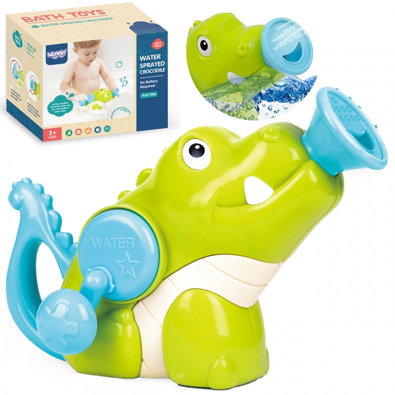 WOOPIE žaislas "Krokodilas" paskatins vaikus maudytis vonioje ir padarys maudynes malonesnes. Norėdami pradėti pramogą, pirmiausia tiesiog panardinkite krokodilo pilvą į vandenį, tada pasukite rankenėlę ir iš žaislo burnos ištrykš vandens srovė. Žaislas skirtas ilgalaikiam žaidimui, o jam veikti nereikia baterijų.
