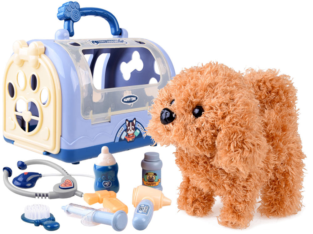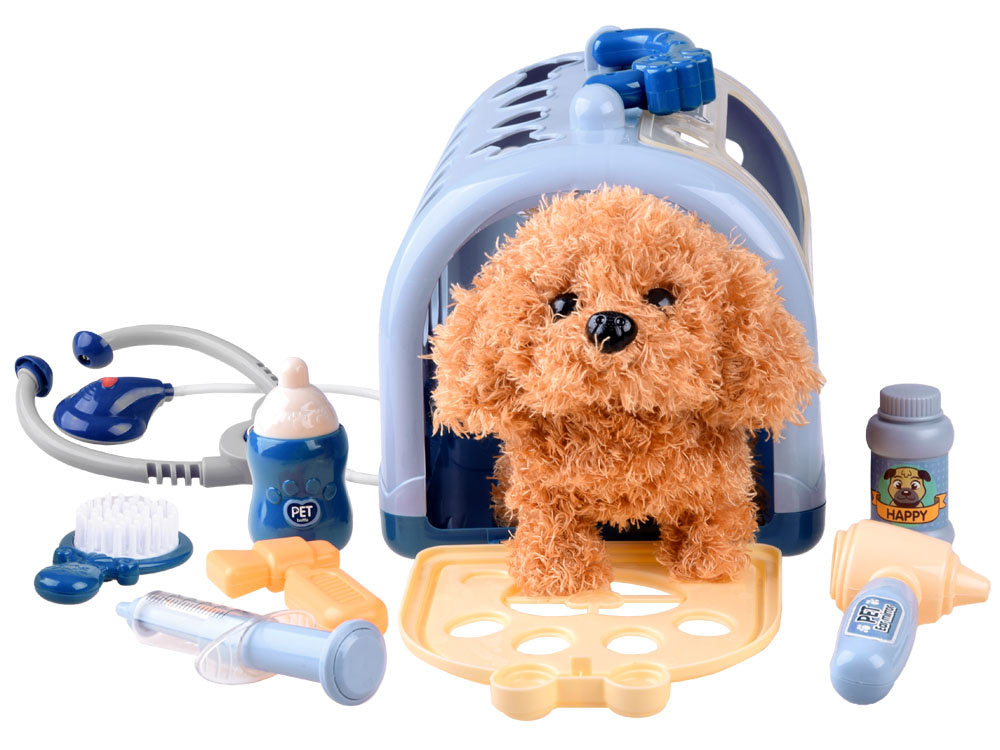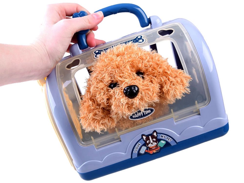 Veterinarijos gydytojo rinkinys su šuniuku ir transporteriu