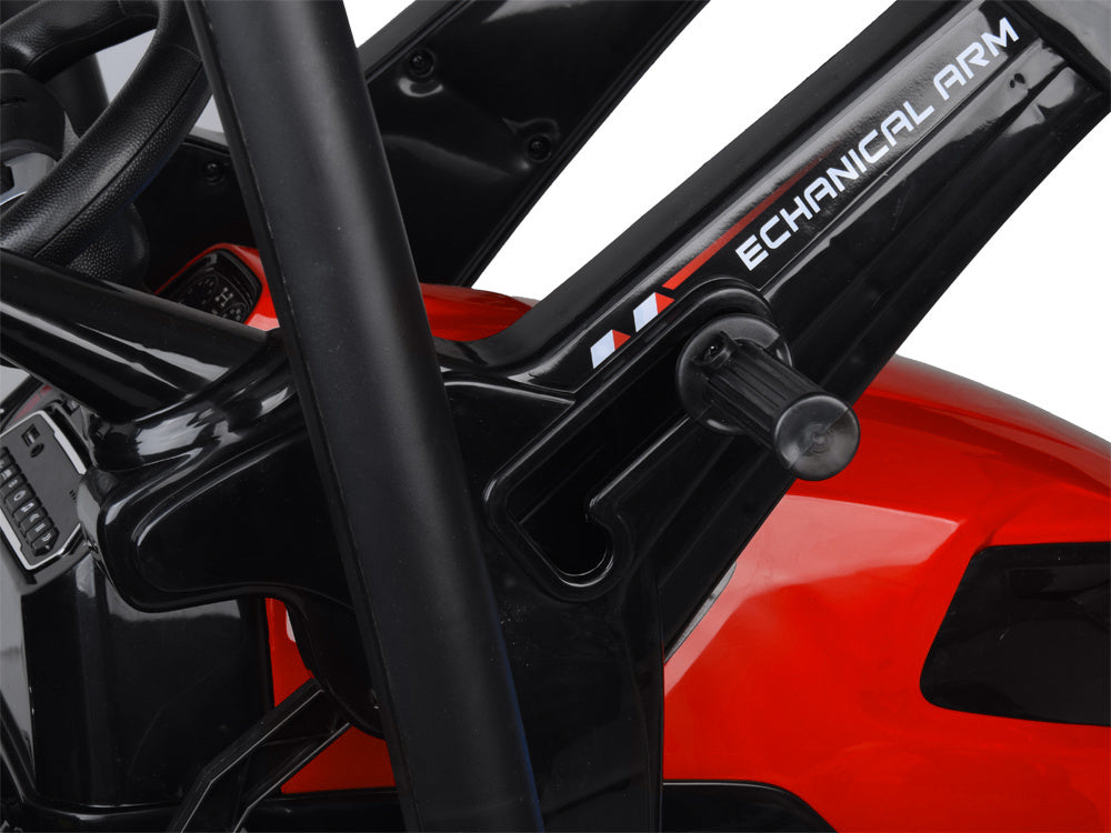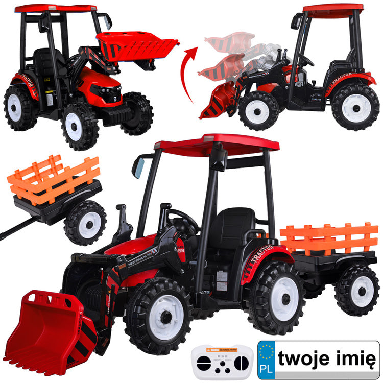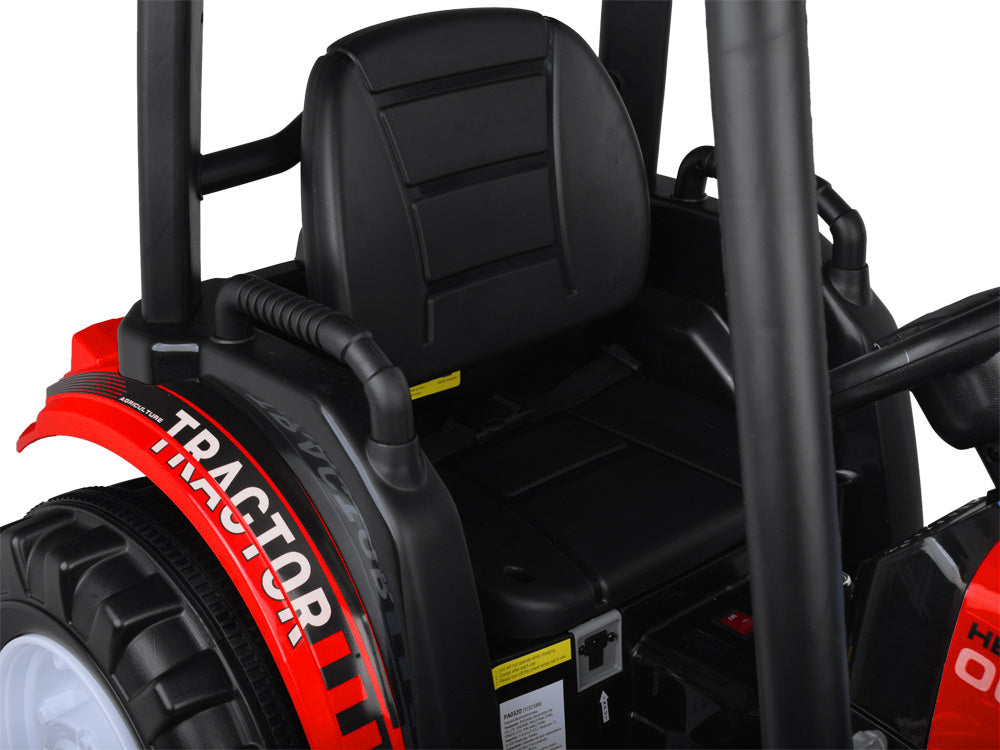 Vienvietis elektrinis traktorius vaikams HTA su priekaba ir kaušu, raudonas