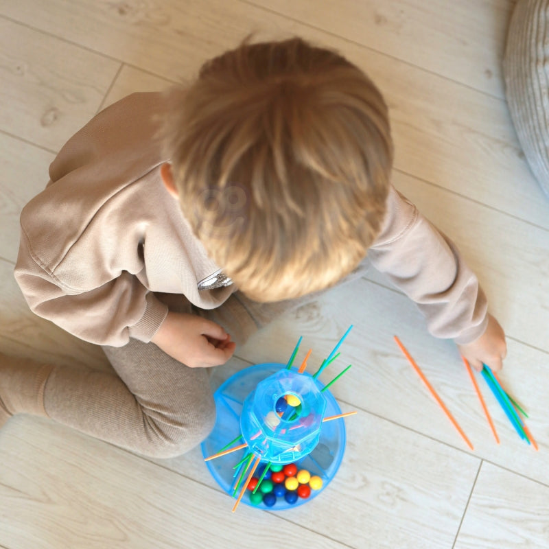 Woopie krentančių kamuoliukų vikrumo žaidimas - puiki pramoga, į kurią gali įsitraukti visa šeima! Paprasta idėja, bet reikia tikslumo ir šiek tiek strategijos - ištraukite lazdeles taip, kad kamuoliukai nenukristų. Tai jaudinantis iššūkis, lavinantis kantrybę, koordinaciją ir loginį mąstymą, taip pat suteikiantis nepamirštamų juoko ir varžymosi akimirkų.