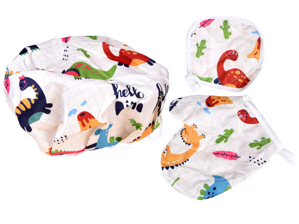 Žavus virėjo prijuostės rinkinys su dinozaurais, skirtas kiekvienam vaikui, norinčiam padėti virtuvėje. Vaikai labai mėgsta padėti tėvams ruošdami maistą, jiems tai puiki pamoka ir pramoga. Vaiko drabužiai bus apsaugoti, o mažasis pagalbininkas jausis labai profesionalus ir ypatingas.
