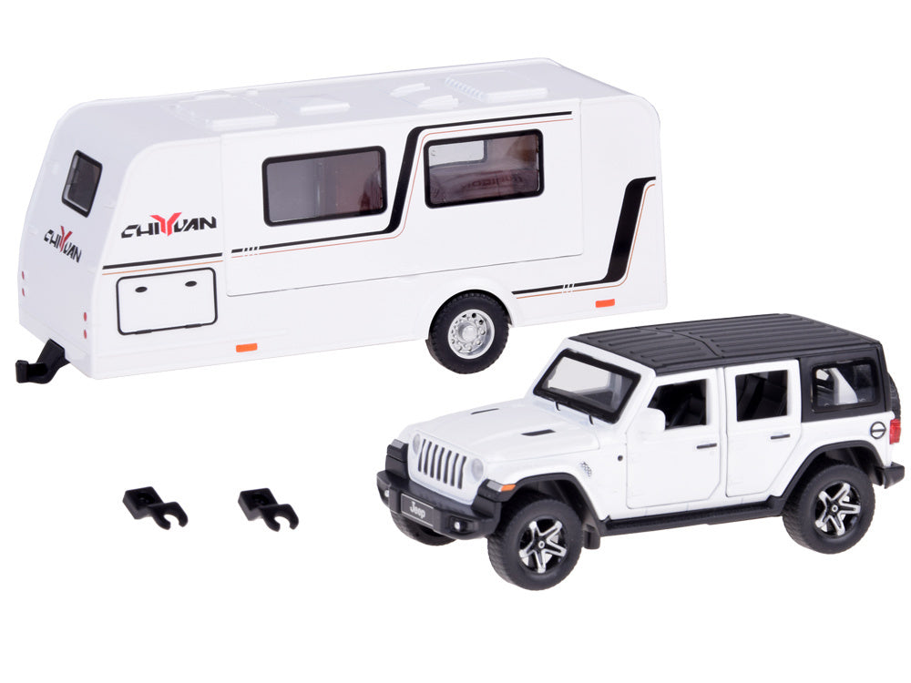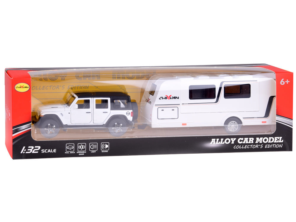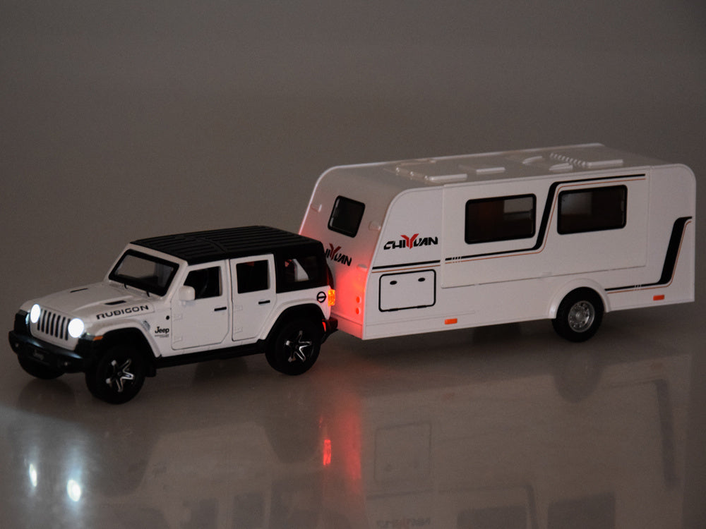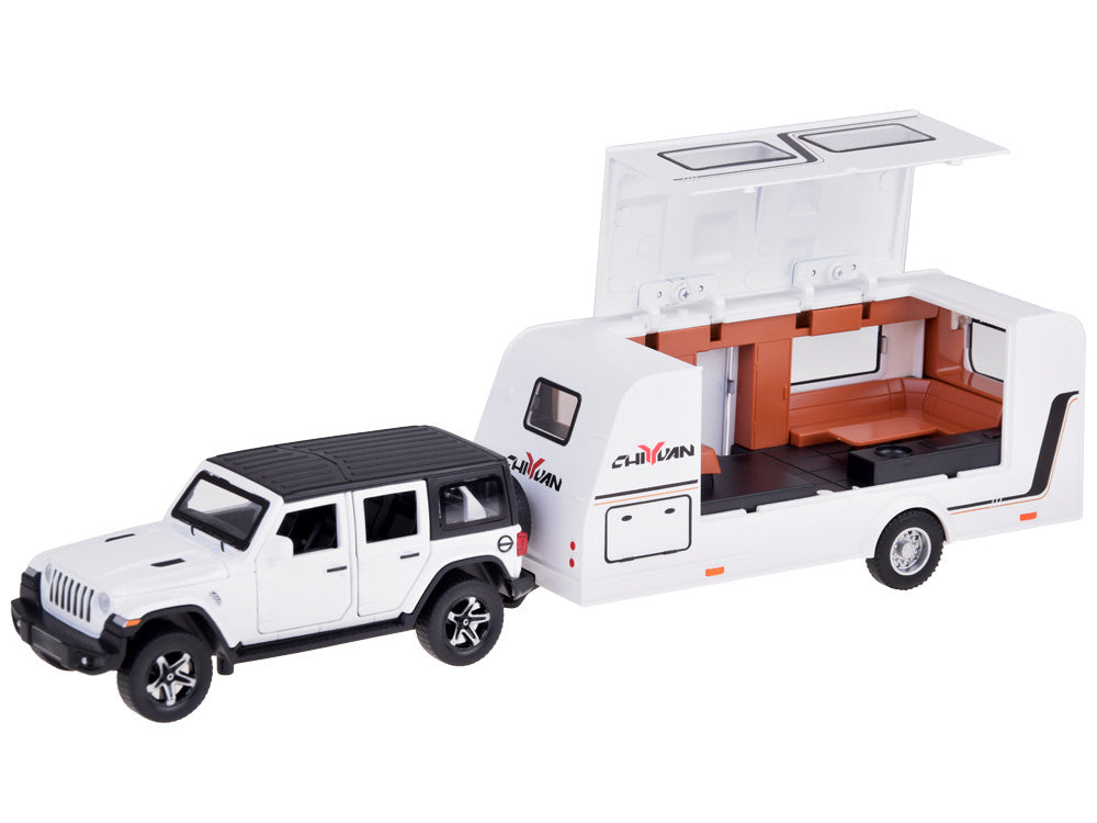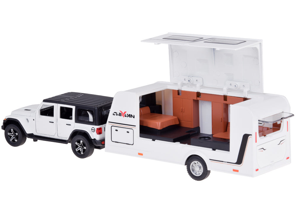 Visureigio ir kemperio rinkinys yra puikus žaislas, kuris nukels jūsų vaiką į atostogų nuotykių pasaulį! Metalinis visureigis pagamintas itin kruopščiai, o važiuojant šviečiantys žibintai suteikia tikroviškumo. Visureigio ir kemperio rinkinys yra puiki dovanų idėja mažiesiems automobilių ir kelionių gerbėjams.