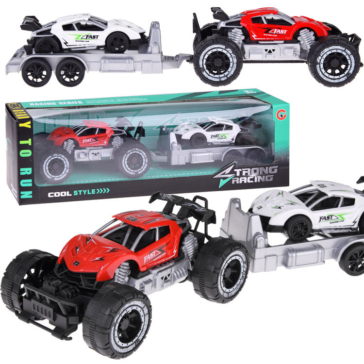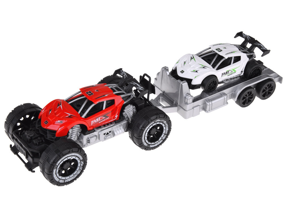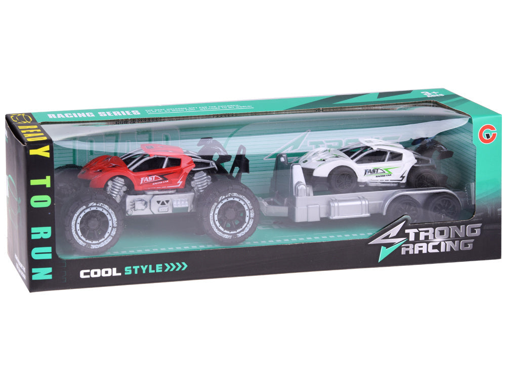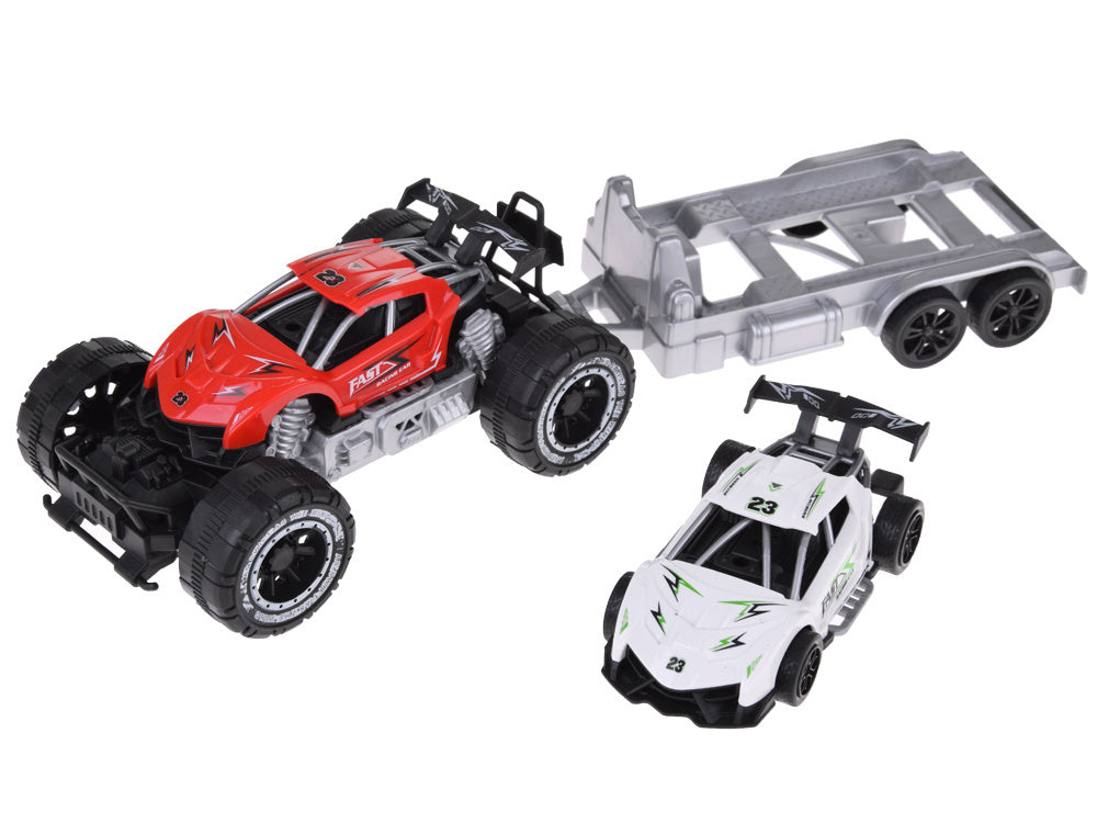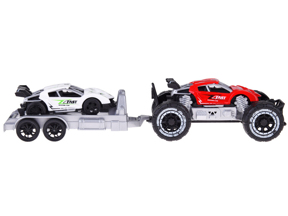 Visureigis su vilkiku ir sportiniu automobiliu - tai transporto priemonė, kuriai jokia kliūtis nebus grėsmė.. Visureigio ir sportinio automobilio ratai yra guminiai, o visureigio priekabos - plastikiniai. Transporto priemonių rinkinys smagus mažiesiems kolekcionieriui ir automobilių gerbėjui. Įvairovė padės lavinti vaiko vaizduotę ir rankų darbo įgūdžius.