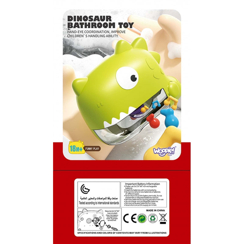 WOOPIE dinozauro formos burbulų mašina yra puikus vonios žaislas, kurio talpa - 250 ml, o įmontuotas variklis gali automatiškai generuoti daugiau kaip 5000 burbulų, todėl greitai užpildysite visą vonią. Muilo burbulų mašina pagaminta iš aukštos kokybės ABS, atspari vandeniui pagal IP6 standartą, o muzikos funkcija puikiai tinka naudoti ir lauke. Patobulinti siurbtukai lengvai prisitvirtina prie lygių paviršių, itin lipnūs, todėl lengvai nenukrenta.