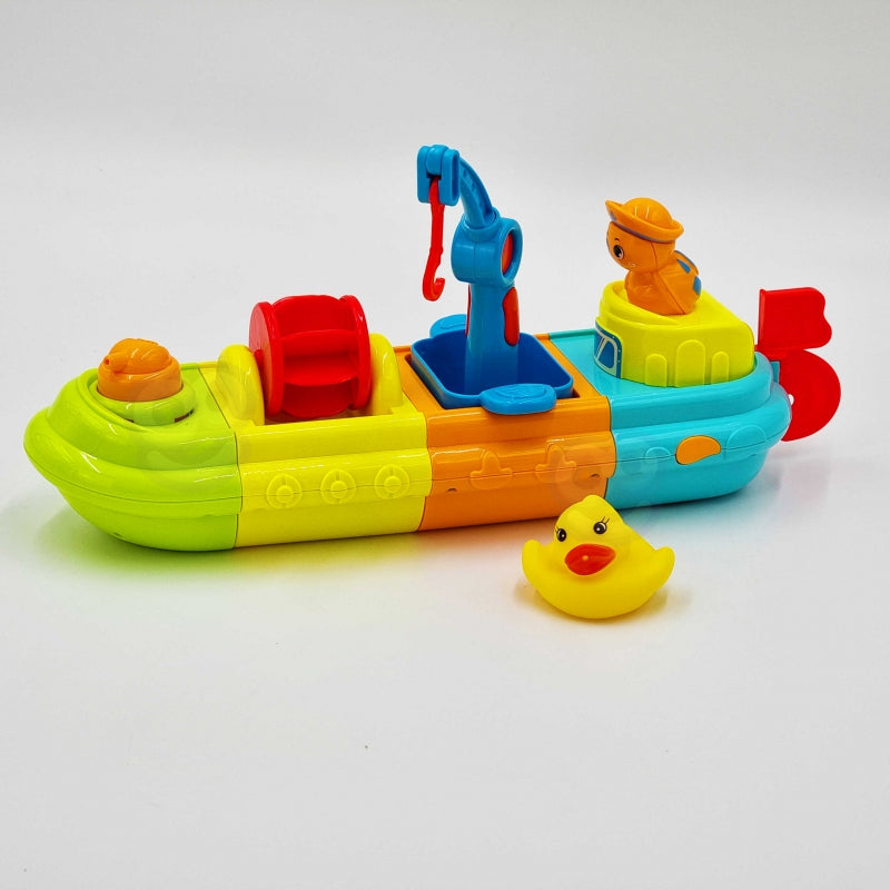Spalvingas "Woopie" laivas - tai žaislas, kuris vaikams suteiks daugiau malonumo maudantis vonioje. Jis pagamintas kaip įvairiaspalvis laivelis su keleiviais - vėžliuku ir antimi. Laivelį sudaro kelios dalys. Joje yra kranas su kabliu, prie kurio galime pritvirtinti antį, vandens malūnėlį ir patranką.