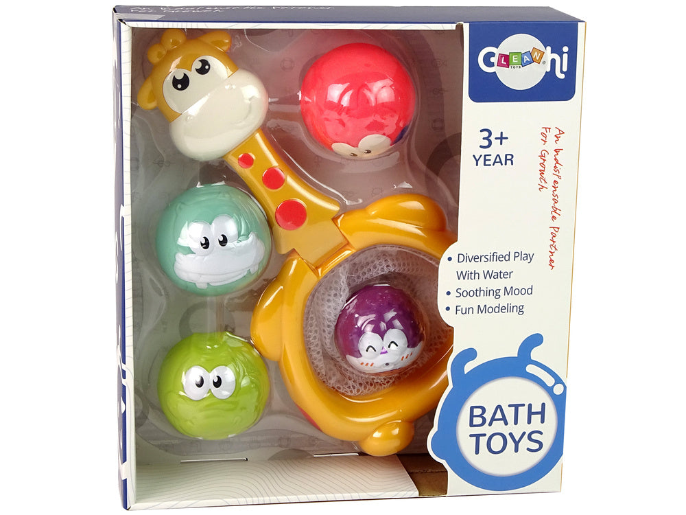 Vonios žaislas žirafa su guminiais kamuoliukais