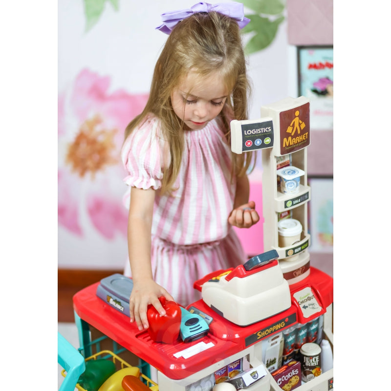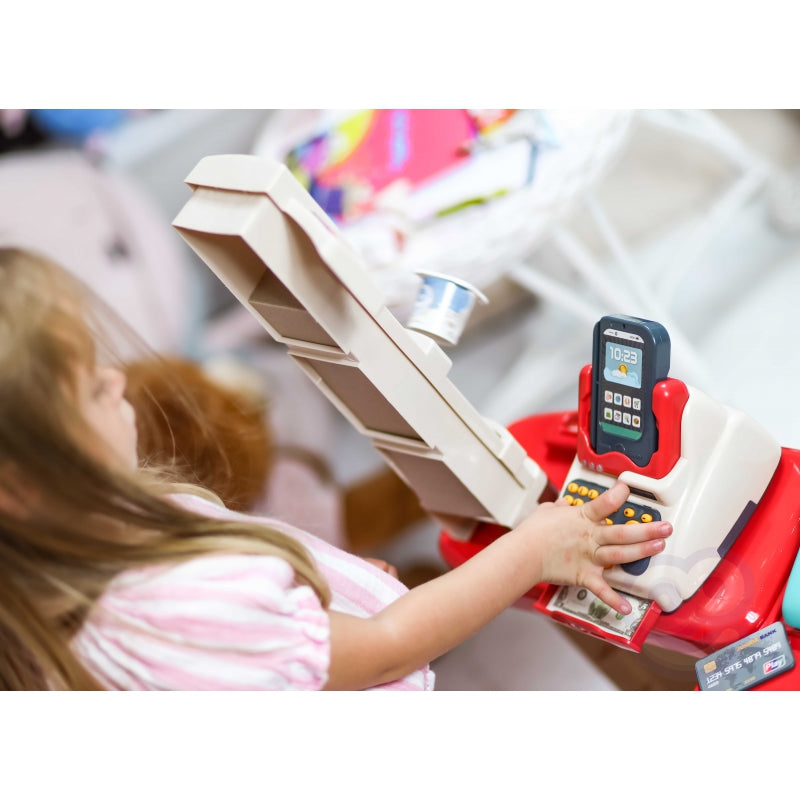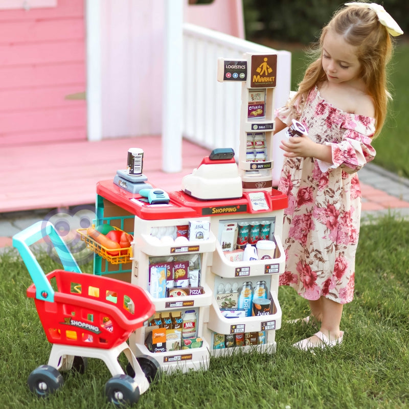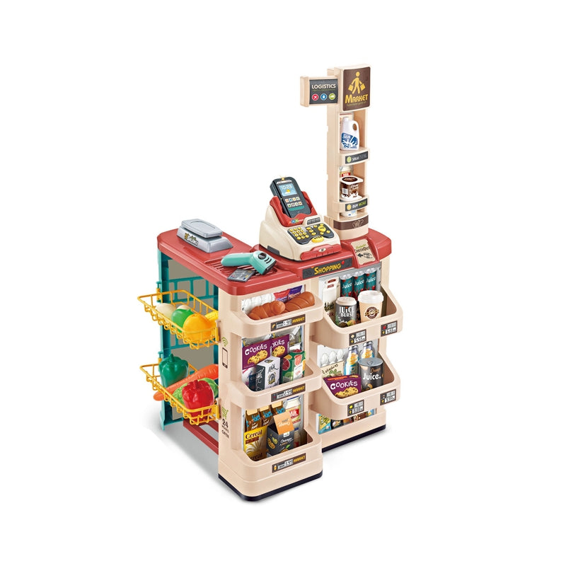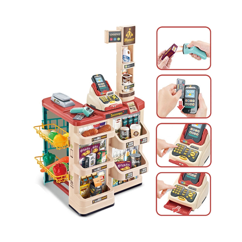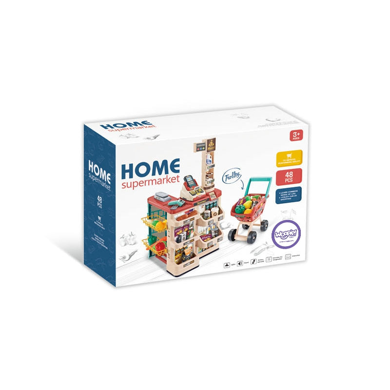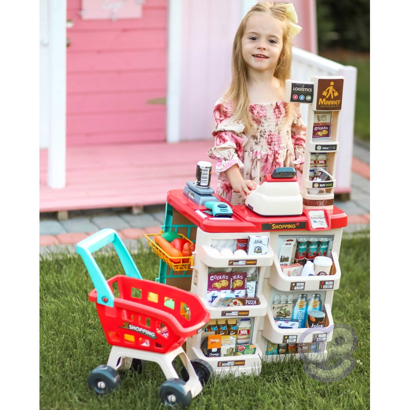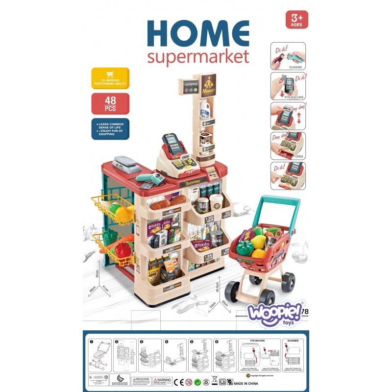 WOOPIE Sklep Supermarket z Wózkiem Sklepowym Waga Kasa Skaner + 48 Akc.