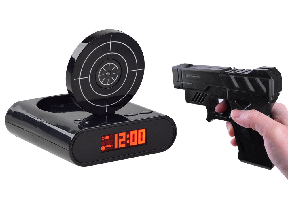 Puikus žadintuvas tiek vaikams tiek suaugusiems - tiesiog nukreipkite ginklą į taikinį ir žadintuvas nustos skambėti.