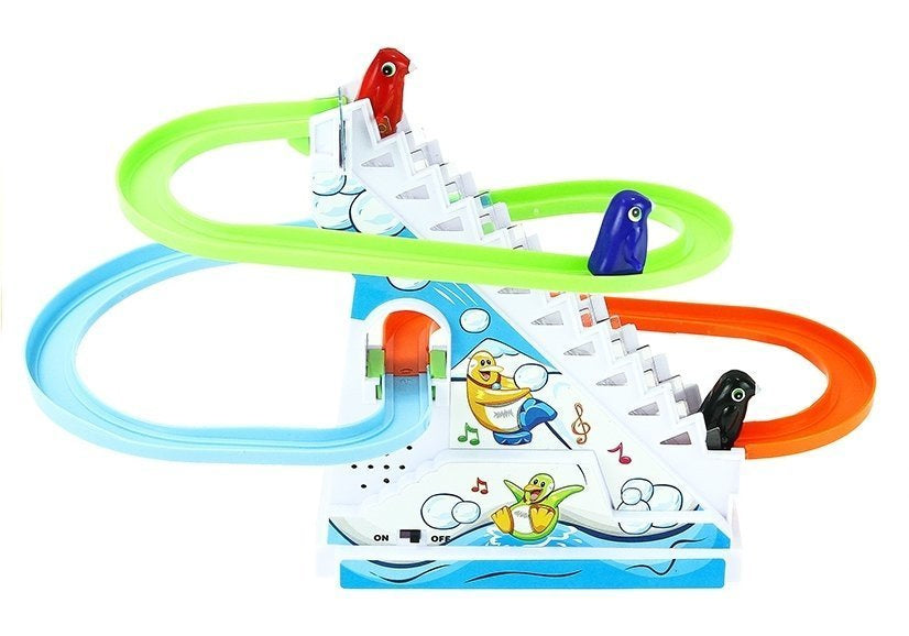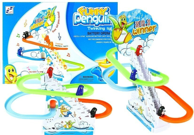 Šiuolaikiškas klasikinio žaidimo variantas, pingvinai lenktyniauja ir slysta trasa. Pramoga tampa dar įdomesnė, kai vaikas gali stebėti, kaip pingvinai leidžiasi surinkta trasa.