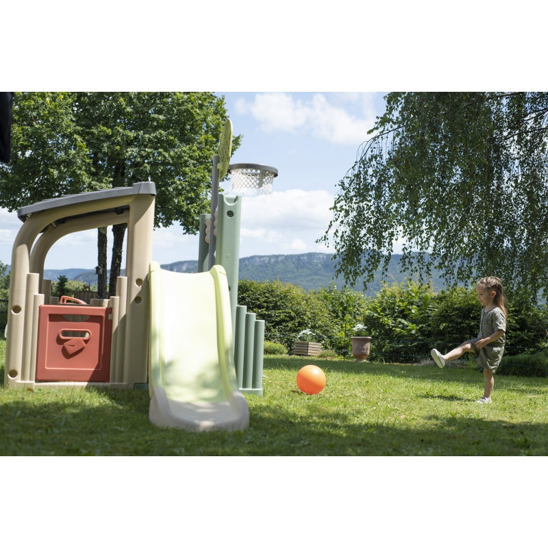 Žaidimų namelis su krepšini, futbolo vartais ir čiuožykla, Smoby