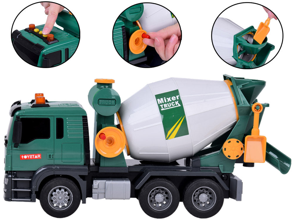Betono maišyklė yra puikus žaislas mažiesiems statybinių transporto priemonių mėgėjams. Jame įrengti garso efektai ir judančios dalys, kad bet koks žaidimas būtų tikroviškesnis. Betono maišyklės būgną galima pasukti, kad būtų imituojamas betono maišymas, o funkcinis piltuvėlis leidžia „išpilti“ mišinį. Puikus pasirinkimas kiekvienam mažajam komercinių transporto priemonių gerbėjui!