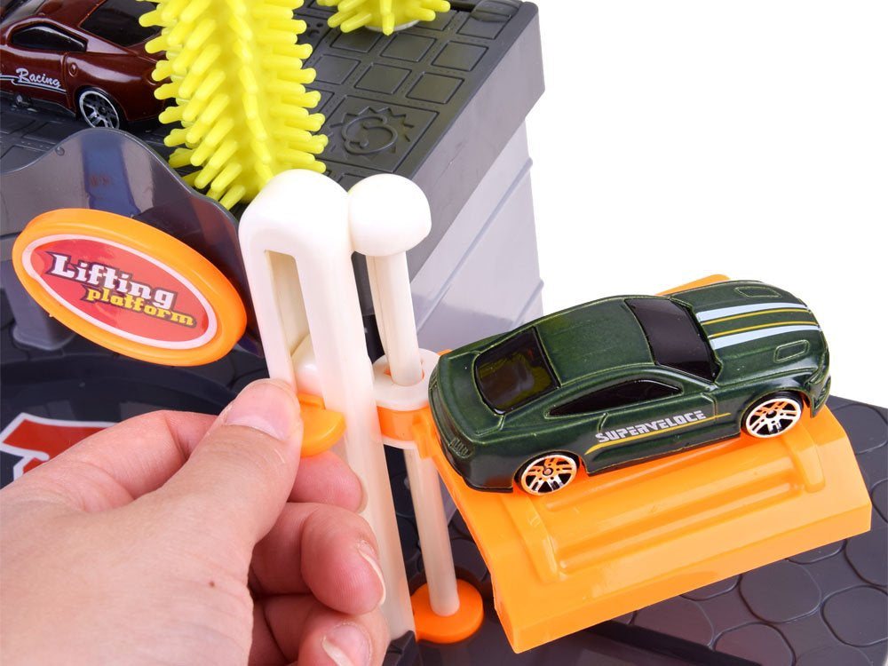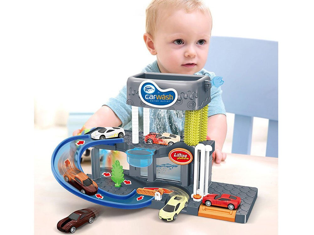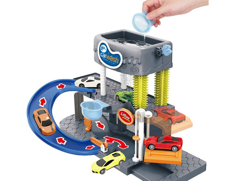Dviejų aukštų automobilių plovykla, skirta automobilių priežiūrai, - tai pasiūlymas švarių transporto priemonių žinovams. Automobilių plovykla su įvažiavimu, liftu, tikru plaukiojančiu vandeniu, silikoniniais šepečiais, garso ir šviesos efektais pradžiugins kiekvieną vaiką. Norėdami nuplauti transporto priemonę, į viršutinę žaislo dalį įpilkite šiek tiek vandens, tada mėlyna letena dozuokite ant automobilio krintantį vandenį. Nuplovus dulkes nuo automobilio, transporto priemonė nuvažiuoja žemyn, kur nusausinama rankšluosčiu.