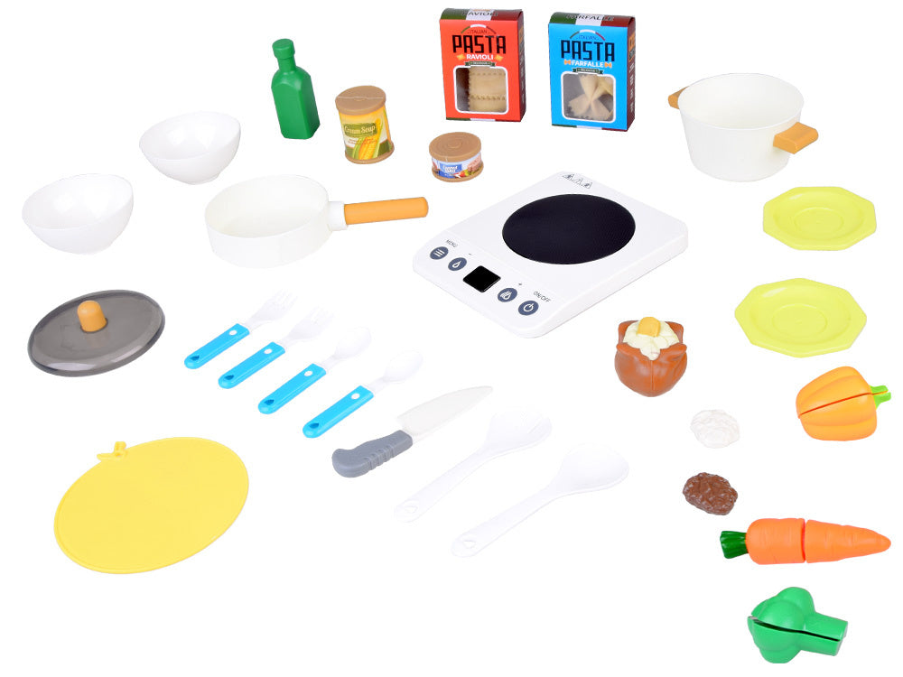 Nešiojamoji indukcinė viryklė su priedų rinkiniu puikiai tiks bet kuriame, net mažiausiame vaikų kambaryje. Jei jūsų vaikas mėgsta „gaminti“ skanius patiekalus savo meškiukams ir lėlėms, šis rinkinys jam tikrai patiks! Rinkinys leidžia ugdyti kulinarinę aistrą visiškai saugiai ir maloniai. Daugelio elementų rinkinys leidžia daugybę valandų kūrybiškai žaisti. Kartu vaikas gali mokytis sveikos mitybos principų, pamatyti, kokios svarbios daržovės kasdienėje mityboje, kaip atrodo subalansuoti patiekalai.