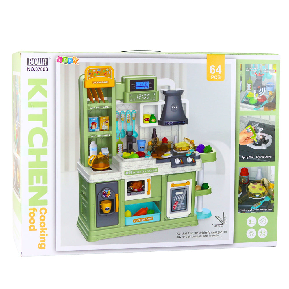 Žaislinė virtuvėlė su garso, šviesos ir garų efektais 64 vnt., žalia