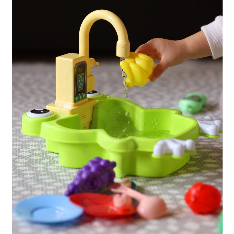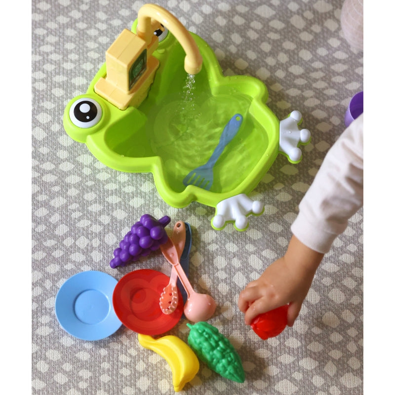 Žaislinė virtuvės kriauklė varlės formos 14 el. WOOPIE