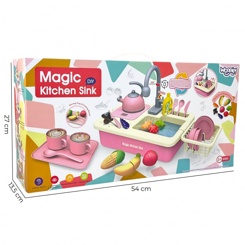WOOPIE prekės ženklo „2-in-1“ virtuvės kriauklė leis vaikams gaminti maistą ir plauti indus taip, kaip suaugusieji! Žaislas yra puikiai atkurtas, todėl jūsų vaikas jaučiasi taip, tarsi užsiimtų tikra virtuvės veikla. jis turi judančių dalių, pavyzdžiui, čiaupą, iš kurio teka tikras vanduo. Žaidimas gaminant maistą, plaunant indus ir atliekant panašius darbus padeda vaikams ugdyti atsakomybės ir savarankiškumo jausmą , kuris yra svarbi socialinio-emocinio mokymosi dalis.