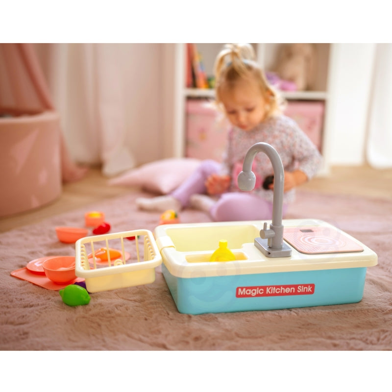 Žaislinė virtuvinė kriauklė su priedais 2in1, mėlyna, WOOPIE